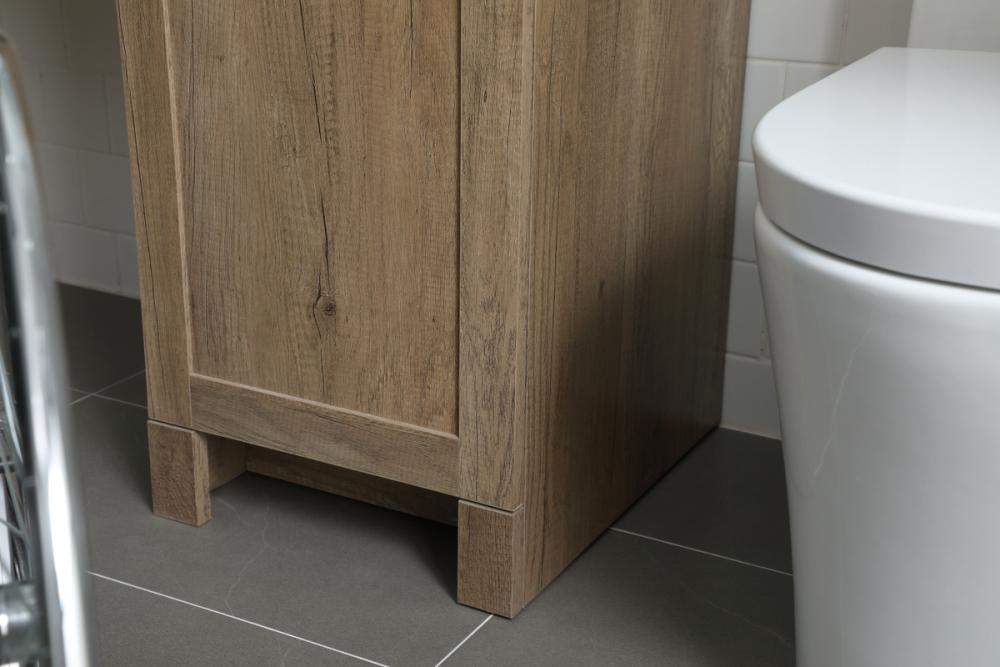 Our faux wood finish is meticulously crafted to resemble the real thing, but with added durability and resistance to moisture. so, you can enjoy the look of wood without any of the upkeep! the vanity base is a smooth non-textured surface.