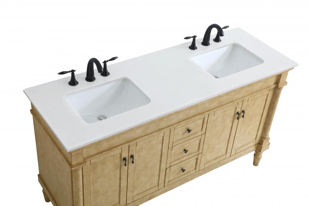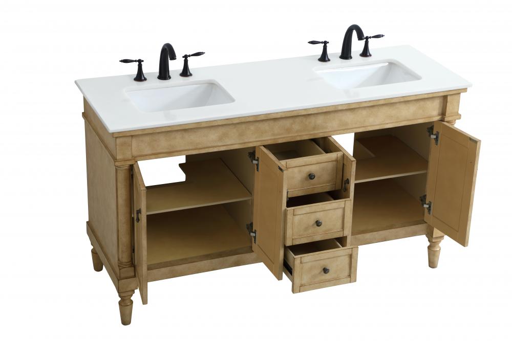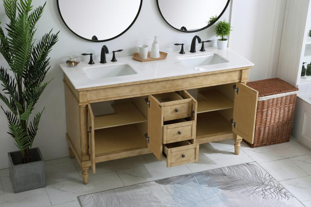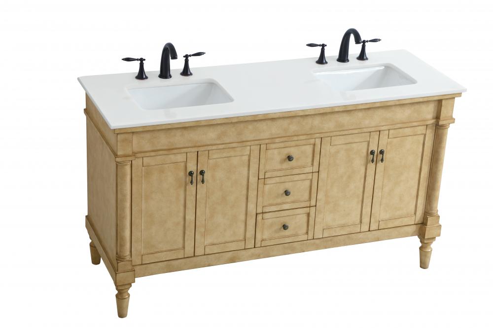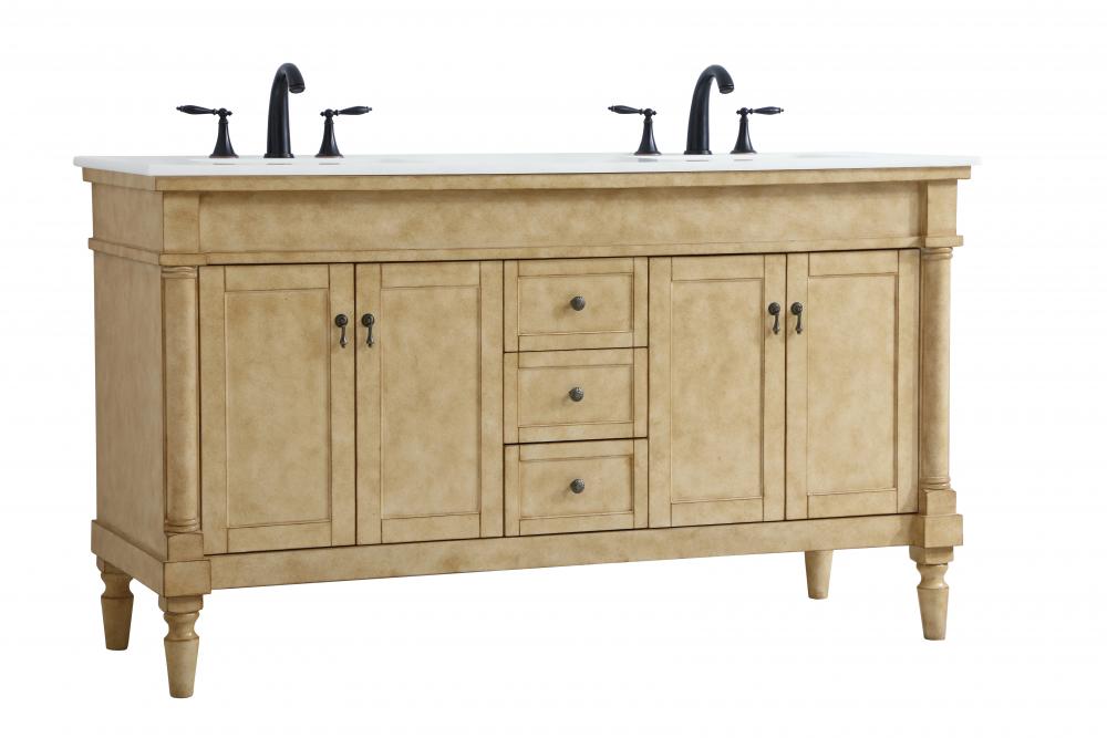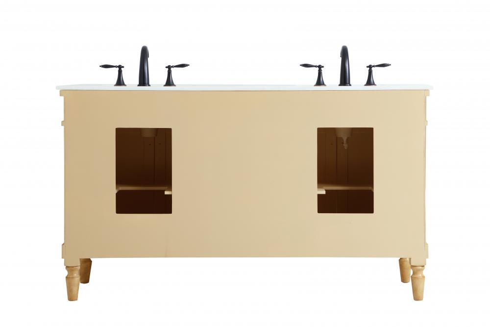 60 inch Double Bathroom vanity in Antique Beige with ivory white engineered marble