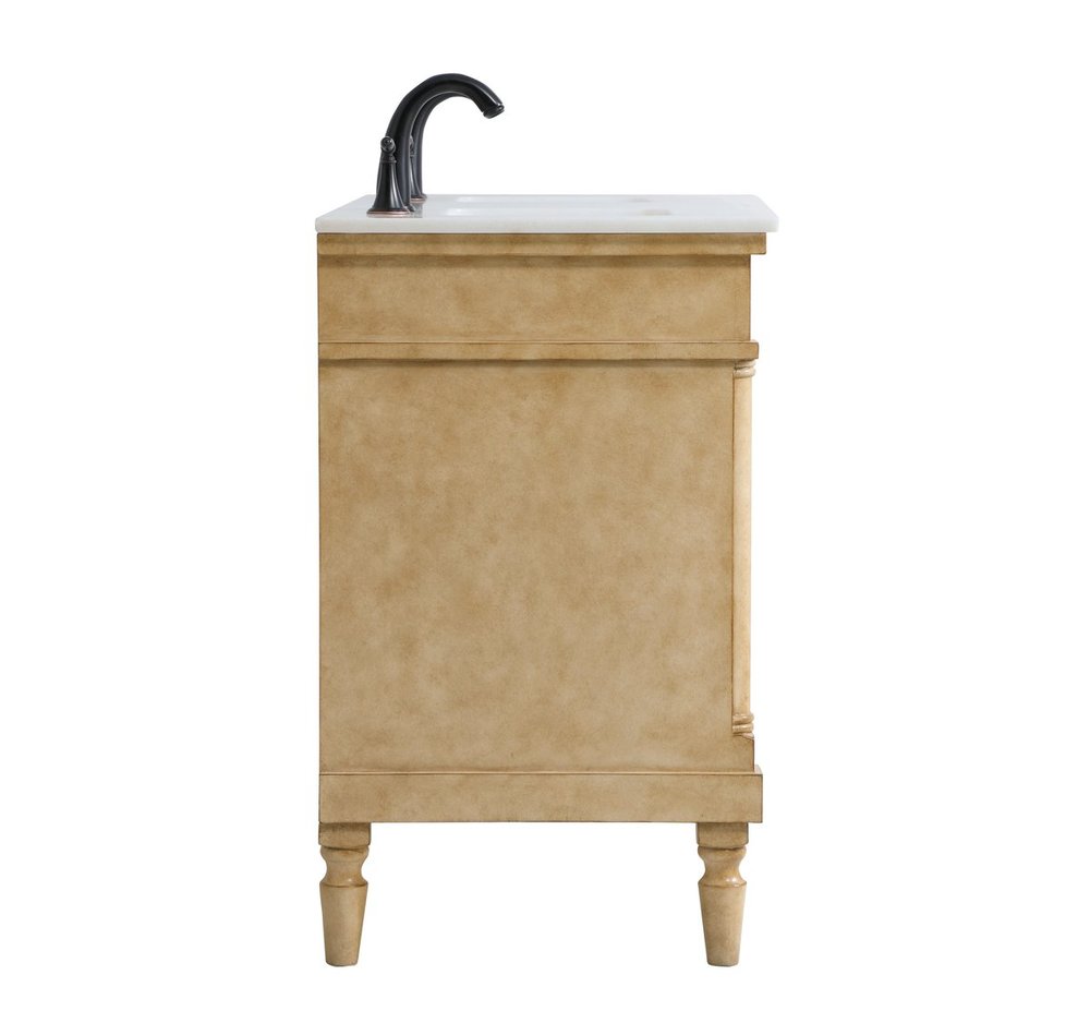 Distressed antique beige finish with a luxurious white with occasional coffee color vein marble countertop