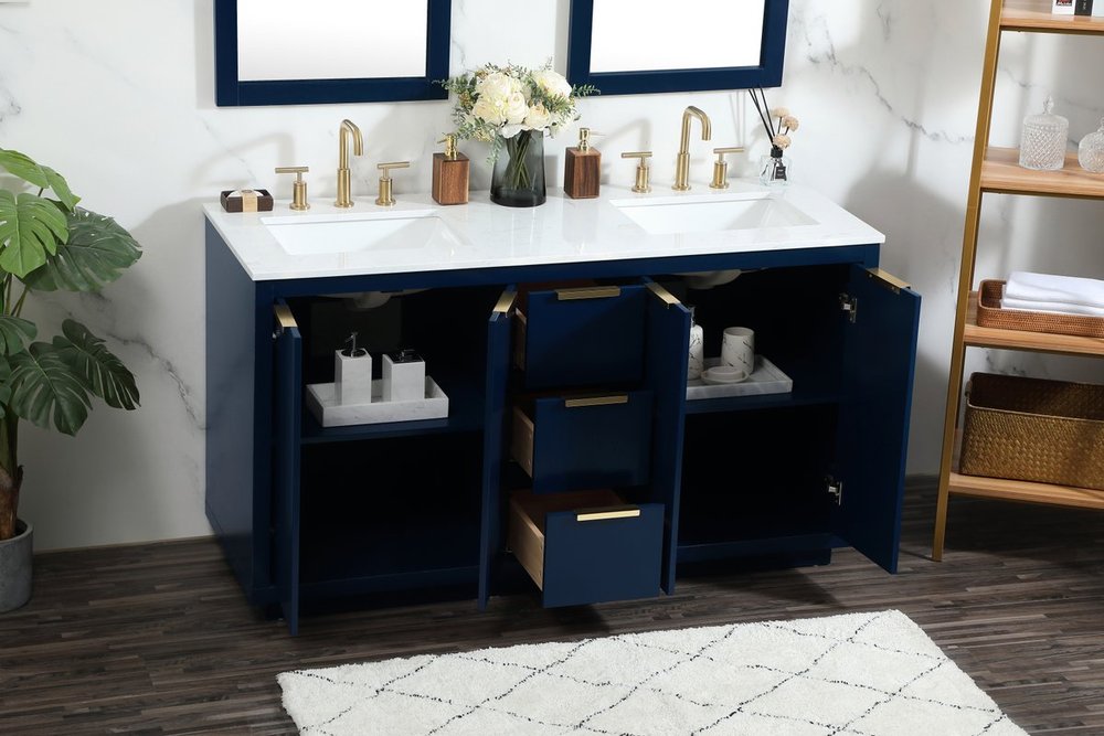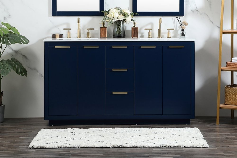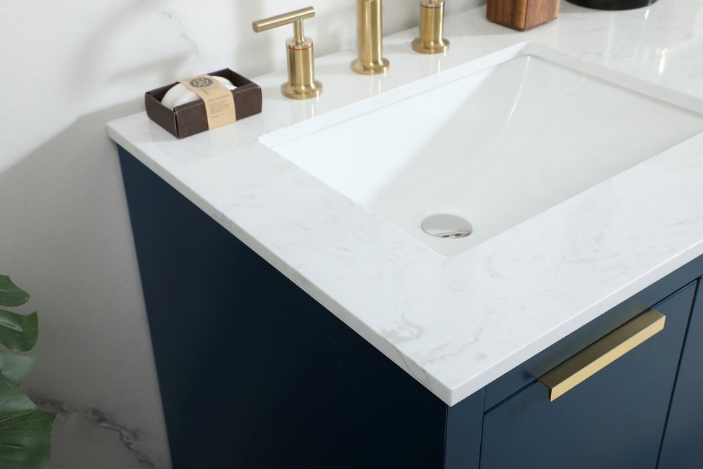 The Blake collection vanity cabinet will be a modern furniture statement piece in your bathroom. Our color combination creates a calming atmosphere in the room. The gold handles bring a vibrant touch to balance the vanity. With the simplistic clean lines, the cabinet catches eyes with its beautiful smooth surface. Open the cabinet doors to store what you desire and make use of the spacious area. Gently close the door and the soft closing glides will quietly closes the door. To top it off, the calacatta engineered marble adds a luxury and modern finish to the durable stonetop.