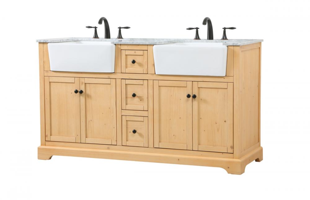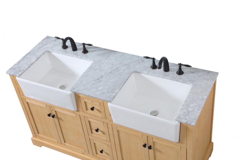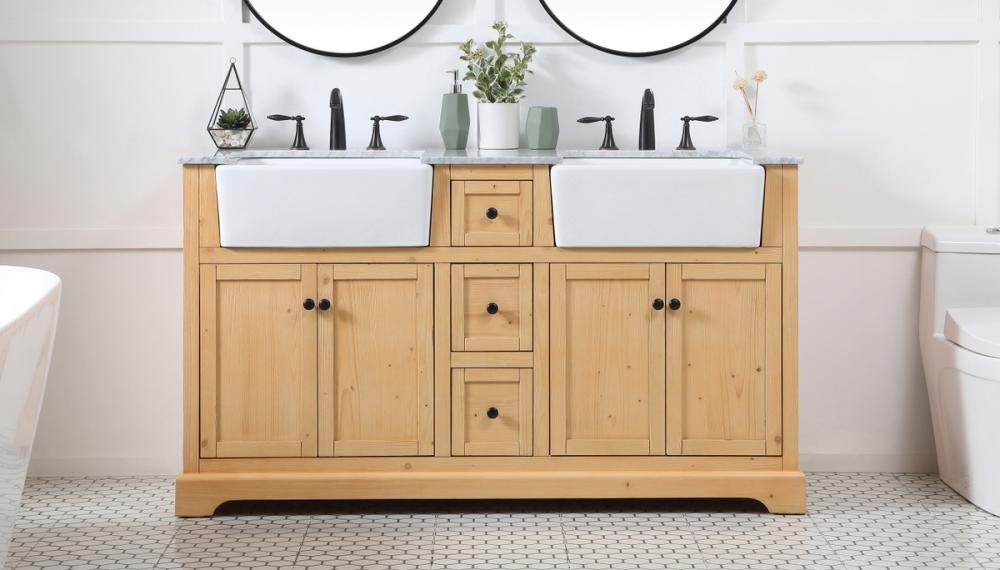 Make the most of your space with this farmhouse style bathroom vanity. Complements well with its beautiful finish, carrara white marble countertop, and the contemporary slender handle bar that sits on the functional drawers with soft closing mechanism, allowing you to store an assortment of bathroom essentials. The lower shelf makes it the perfect space to hold new towels for your guests. This stylish vanity ensures both form and function in your bathroom for you and your guests.