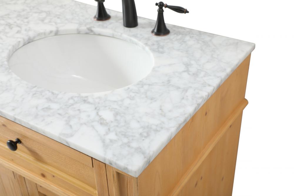 From its carrara white marble top to its handpainted cabinet, it is sure to make a splash in your bathroom. Beneath its natural stone marble top is a round white porcelain undermount sink. A removable shelf, for storing all your bathroom essentials. Convenient open back panel for hassle free installation access.
