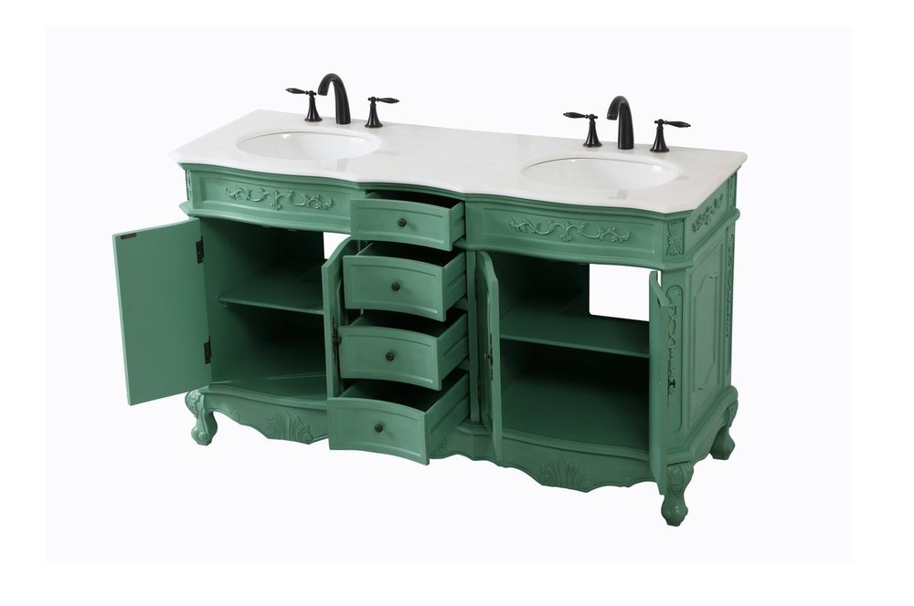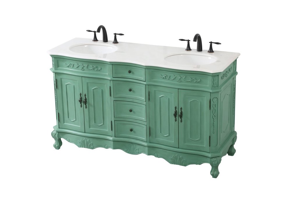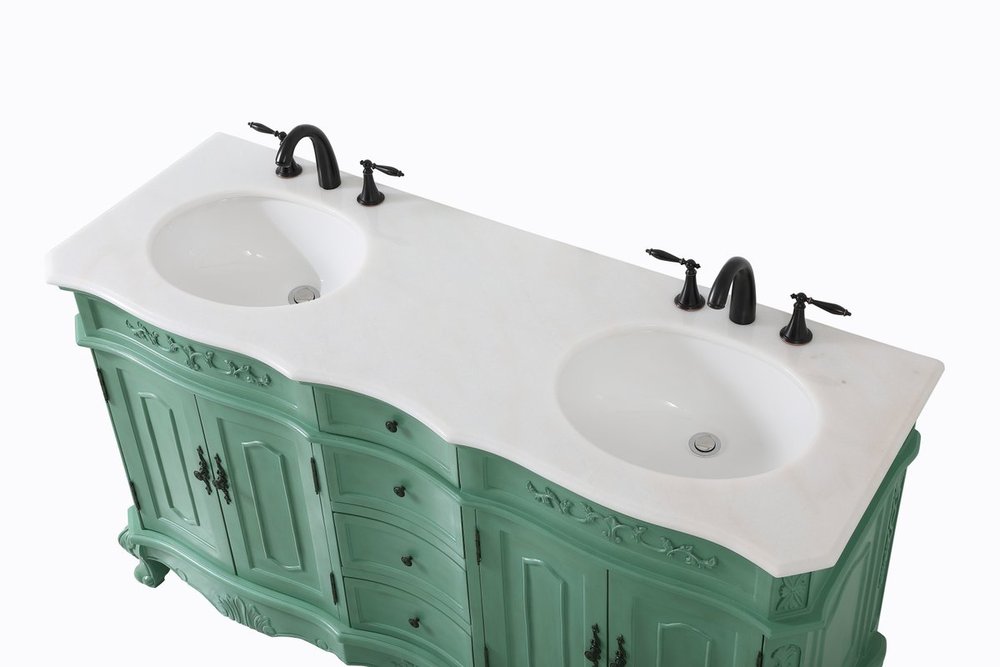 Comes with an off-white marble top with slight brown veining and bevel edge design, please note that due to the natural characteristics of the stone, the color and/or pattern of each countertop may vary from the pictures.
