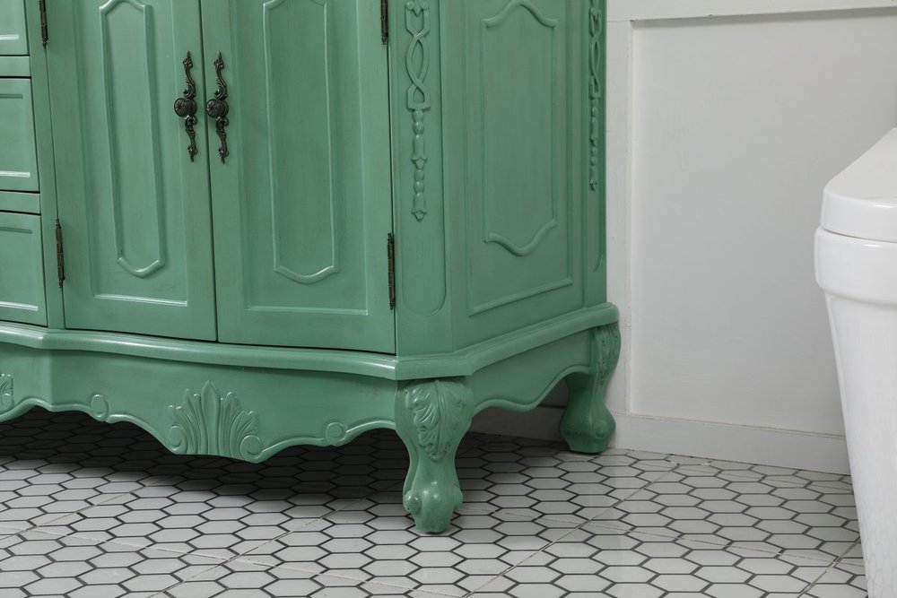 Hand painted in vintage mint finish with distress paint application