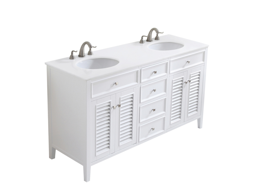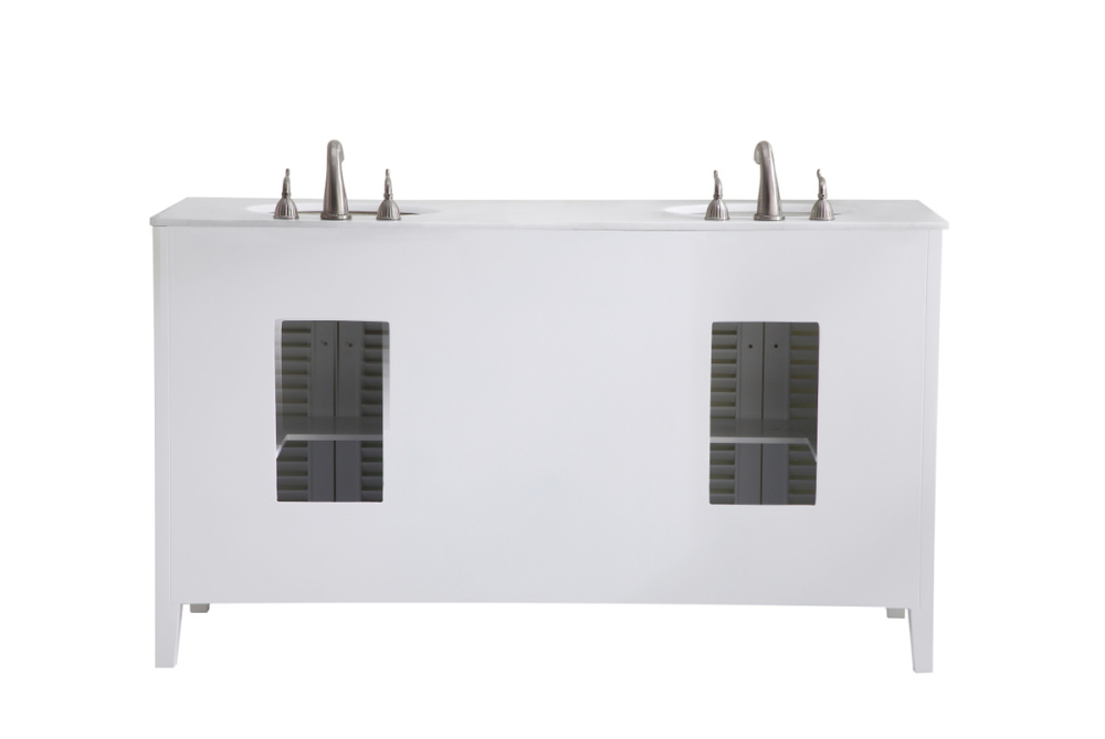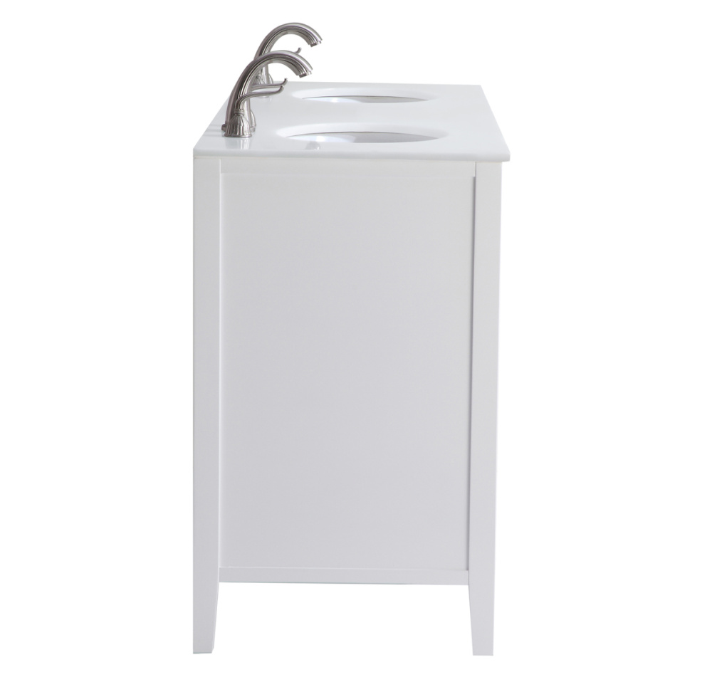 60 inch Double Bathroom vanity in White with ivory white engineered marble