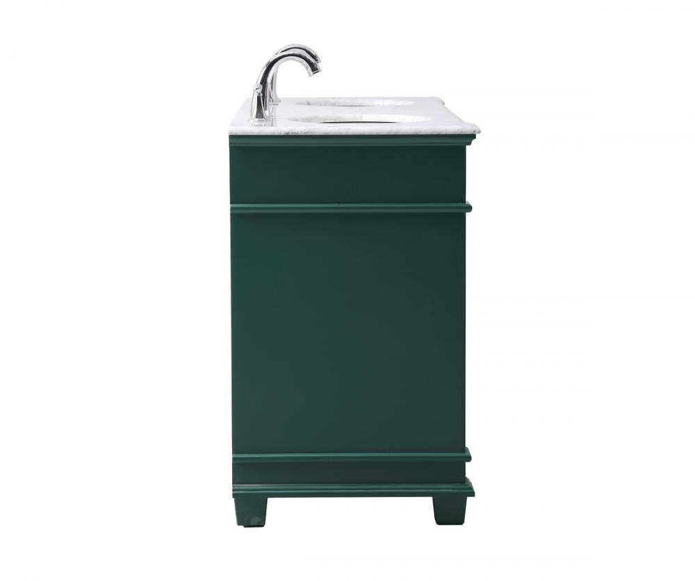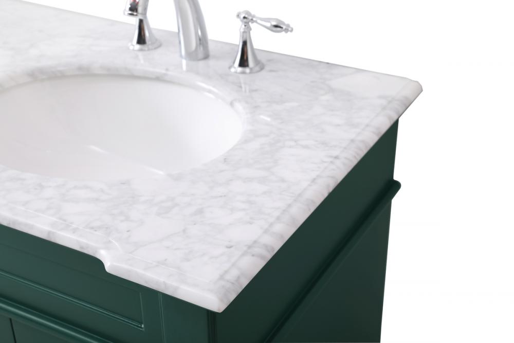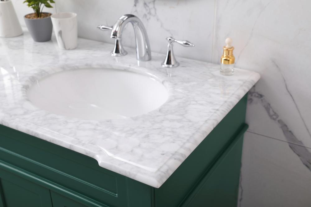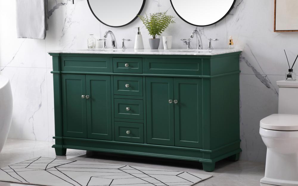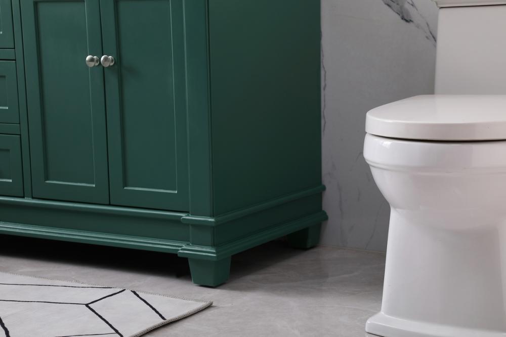 The Wesley Collection vanity cabinet will bring a settle pop of color into your bathroom. The flattering finish is a sophisticated color which creates a calming atmosphere in the room. The brushed nickel knobs bring a vibrant touch to balance the vanity. With the detailed engravings, the cabinet catches eyes with its beautiful lining work. Open the cabinet doors to store what you desire and make use of the spacious area. To top it off, the Carrara white marble adds a luxury and modern finish to the countertop.