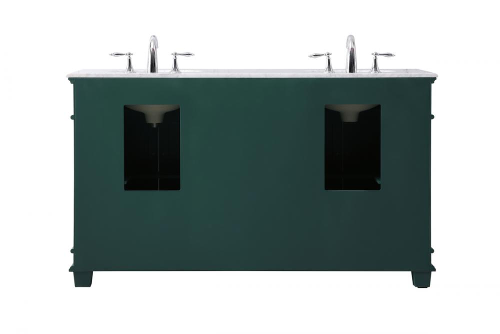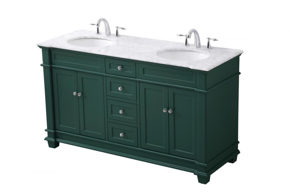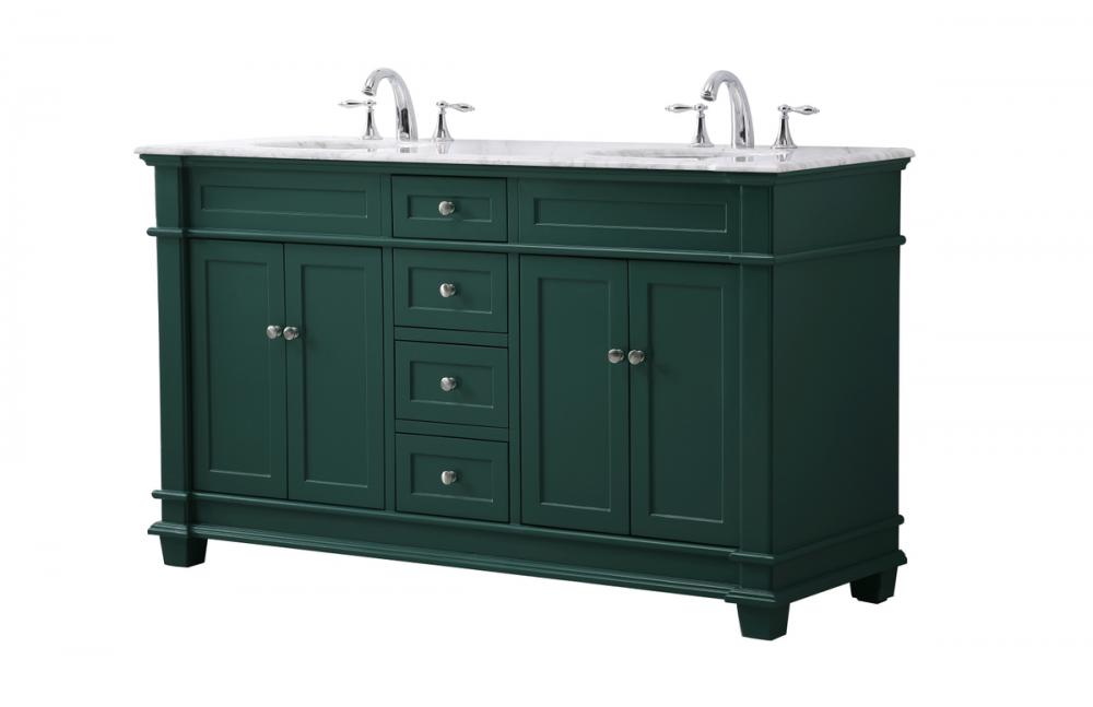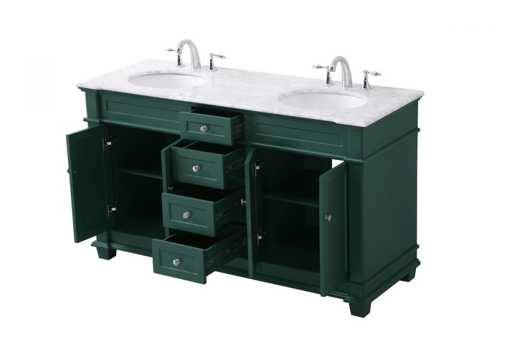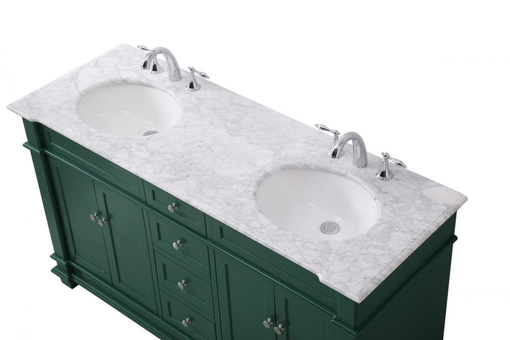The Wesley Collection vanity cabinet will bring a settle pop of color into your bathroom. The flattering finish is a sophisticated color which creates a calming atmosphere in the room. The brushed nickel knobs bring a vibrant touch to balance the vanity. With the detailed engravings, the cabinet catches eyes with its beautiful lining work. Open the cabinet doors to store what you desire and make use of the spacious area. To top it off, the Carrara white marble adds a luxury and modern finish to the countertop.