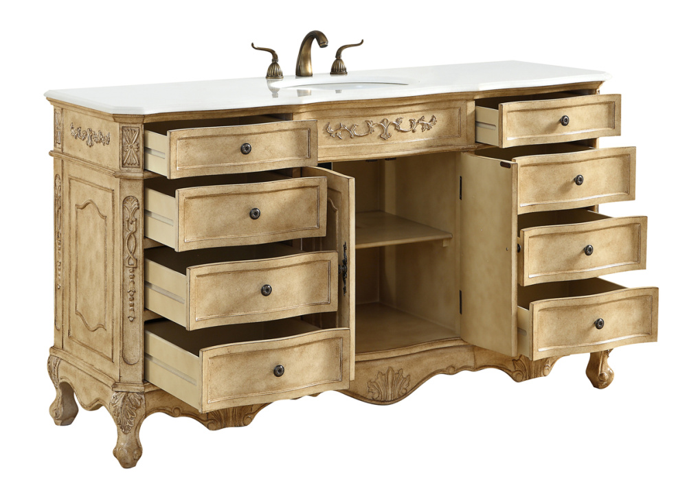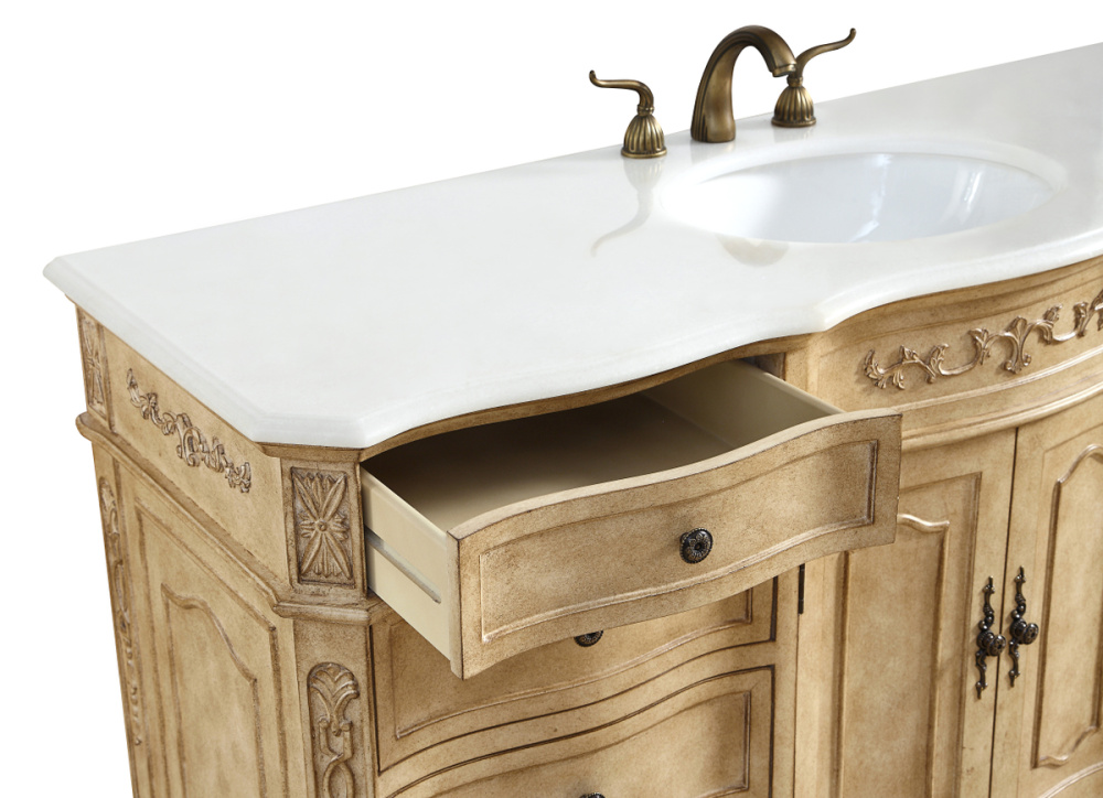 60 inch Single Bathroom vanity In Antique Beige with ivory white engineered marble