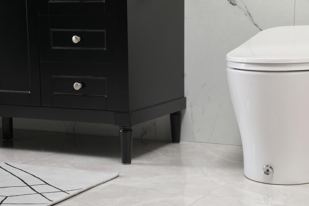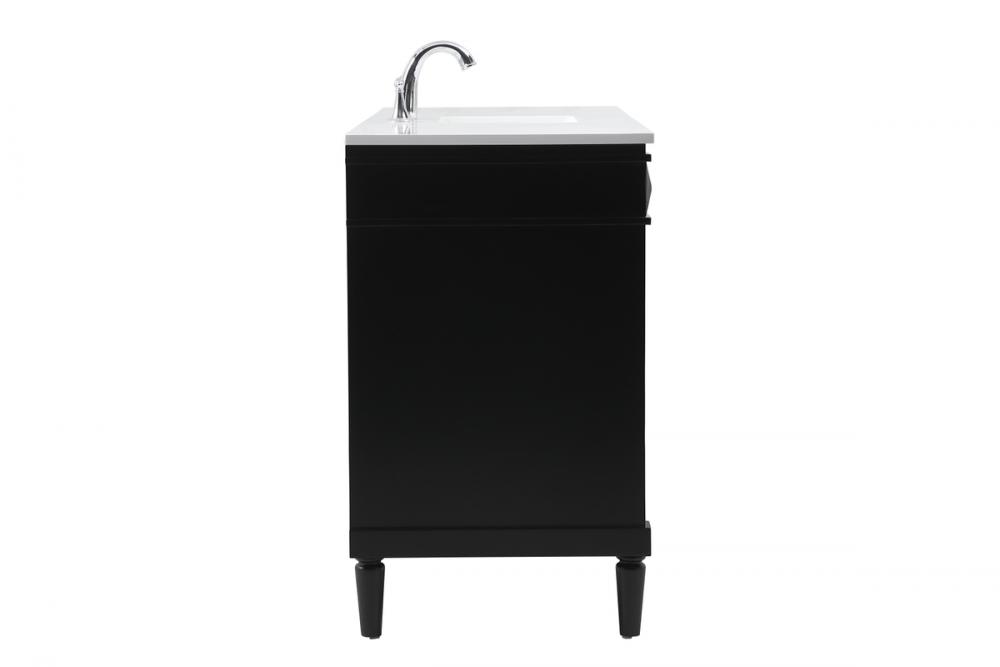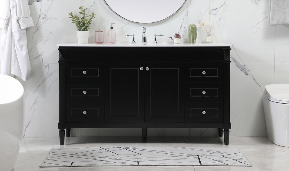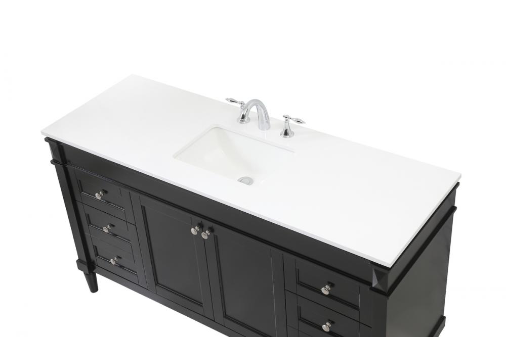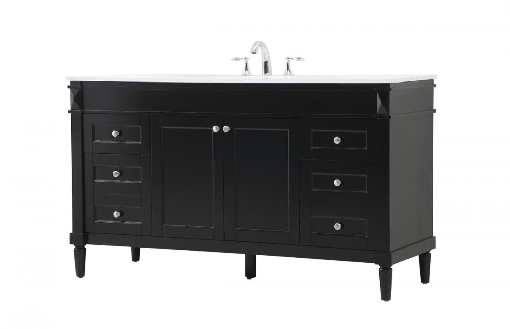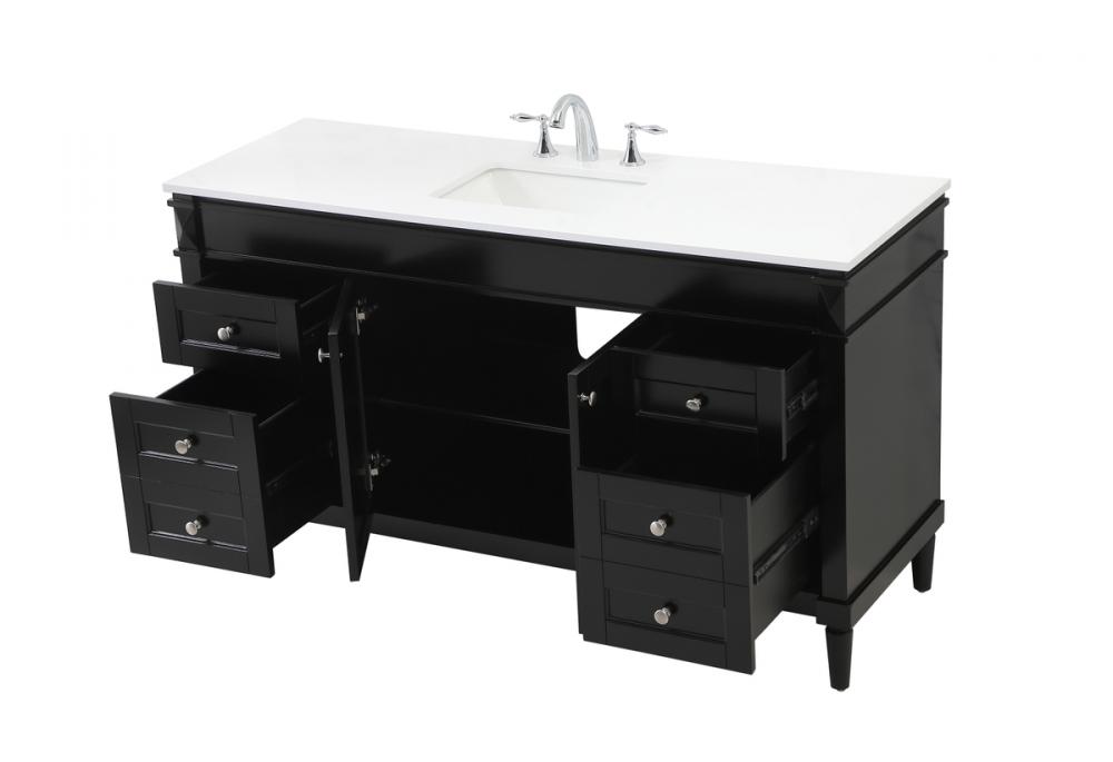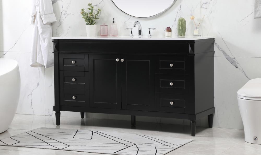 This transitional vanity is a beautiful piece of bathroom furniture will look amazing in your design scheme. The cabinet features a shaker style smooth door panel with simple round knobs and soft close hinges provide ample room for accessories. Packed with multiple side drawers with soft close glides for added comfort and full access to bath supplies. Convenient deep drawer stores all of your tall bath essentials. Constructed of engineered wood and solid wood legs with hand painted finish. The durable engineered marble countertop is a versatile material in an ivory white finish. Minor assembly of the legs needed to get this vanity up and running.