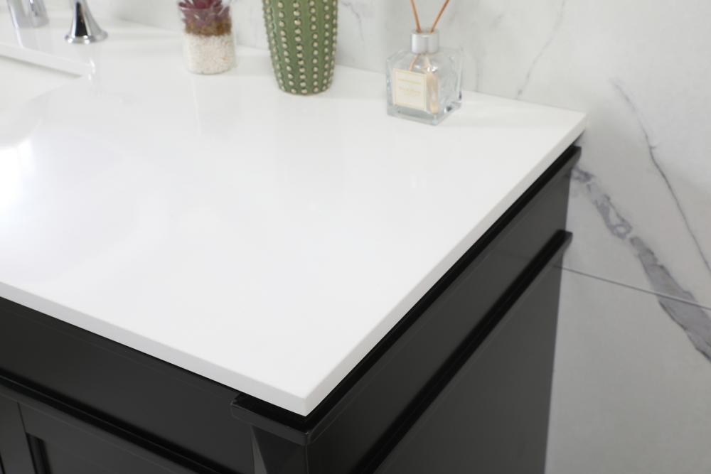 Crafted with durable engineered marble top in ivory white finish and vanity base is hand painted