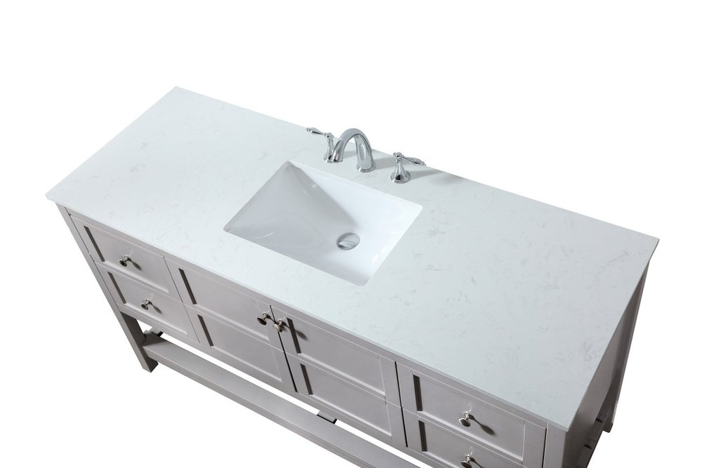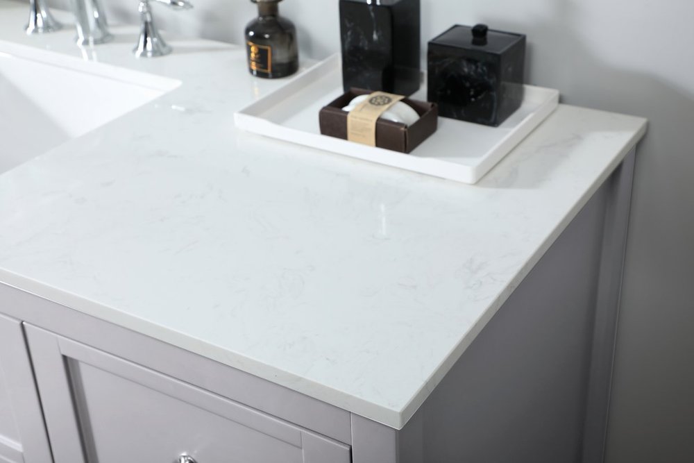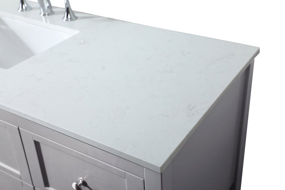 Comes with an undermount porcelain sink and a durable calacatta engineered marble stone top