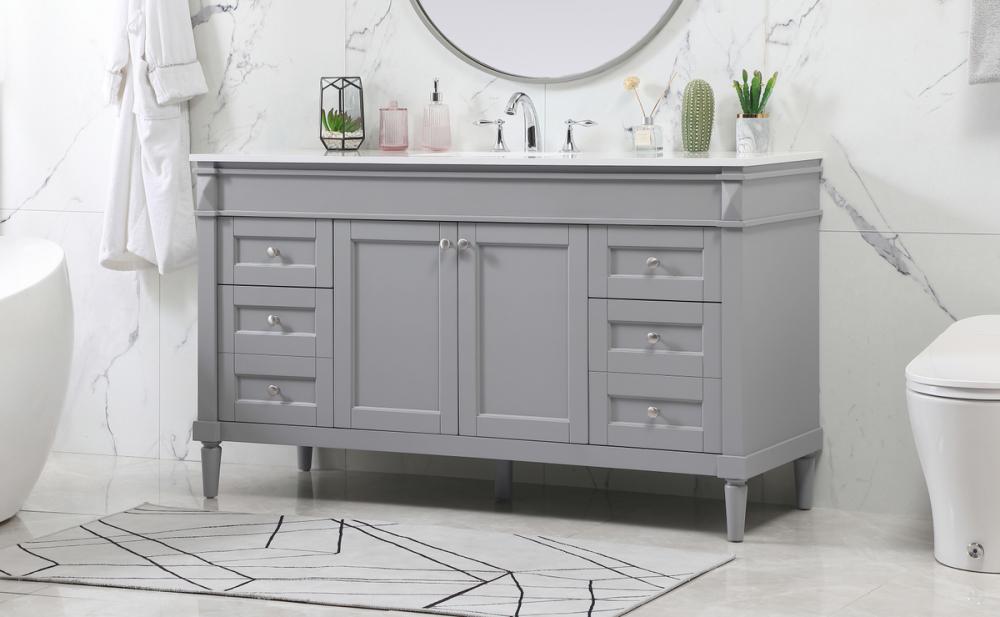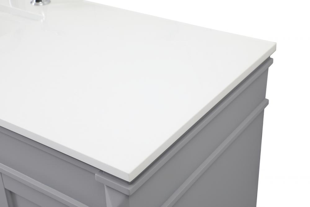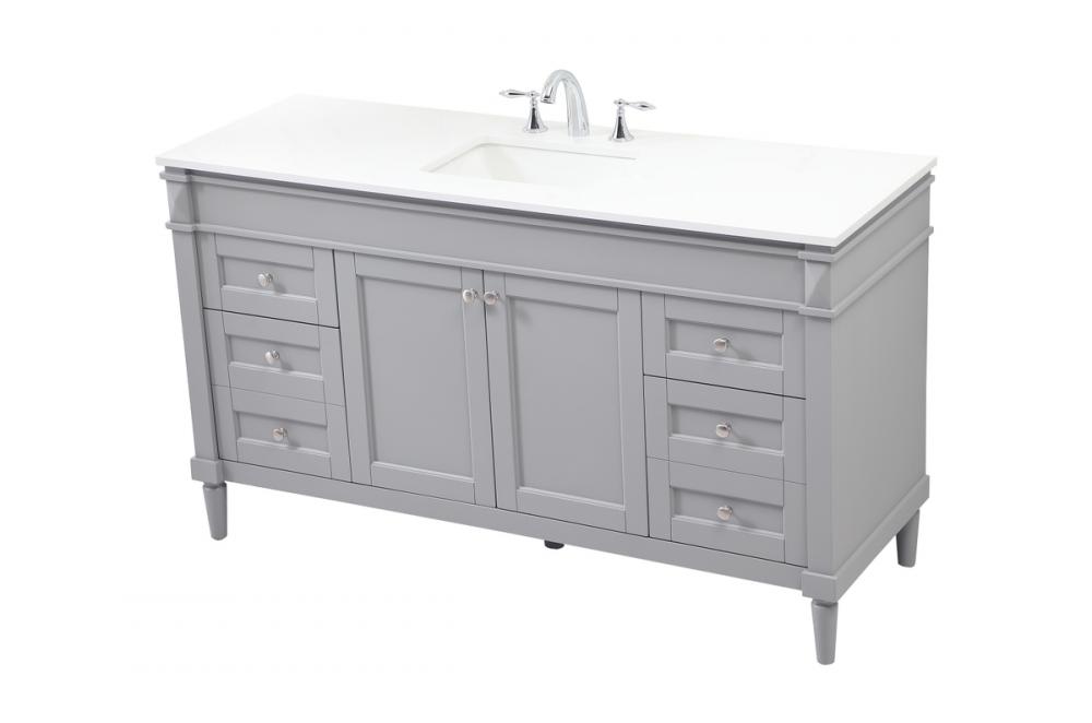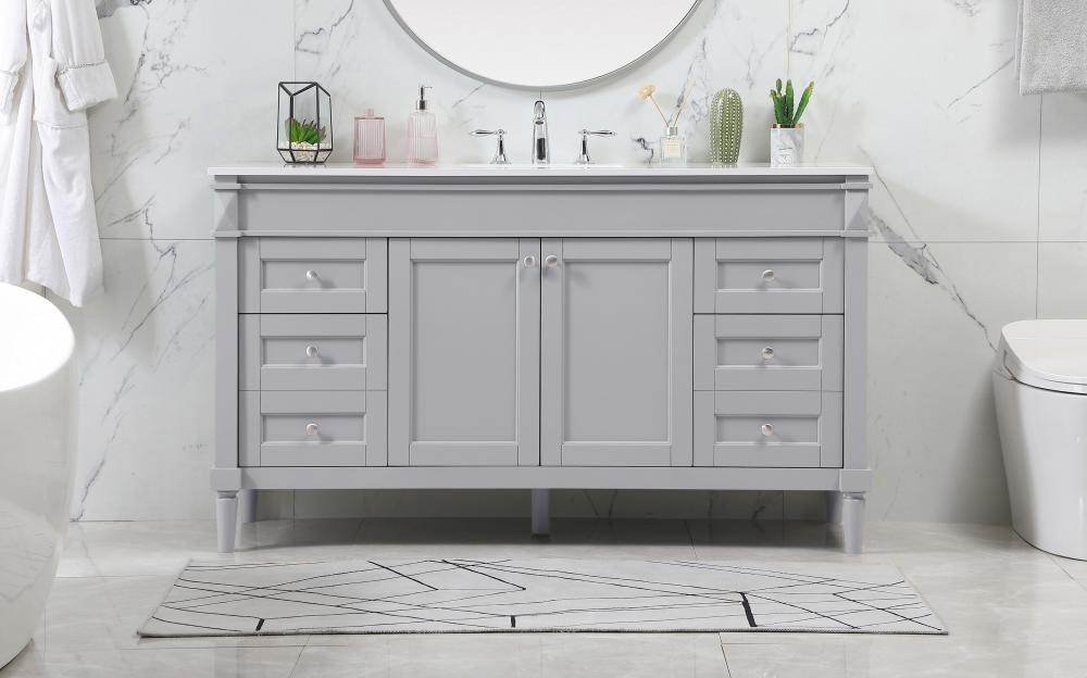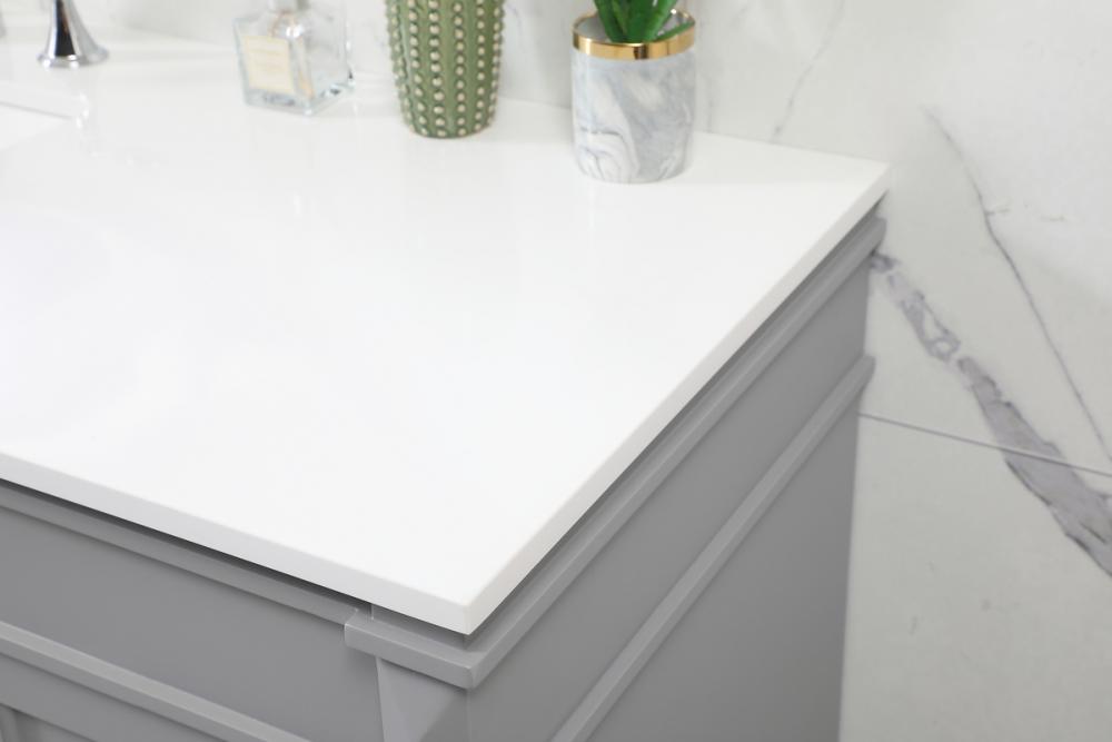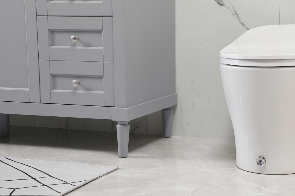 This transitional vanity is a beautiful piece of bathroom furniture will look amazing in your design scheme. The cabinet features a shaker style smooth door panel with simple round knobs and soft close hinges provide ample room for accessories. Packed with multiple side drawers with soft close glides for added comfort and full access to bath supplies. Convenient deep drawer stores all of your tall bath essentials. Constructed of engineered wood and solid wood legs with hand painted finish. The durable engineered marble countertop is a versatile material in an ivory white finish. Minor assembly of the legs needed to get this vanity up and running.