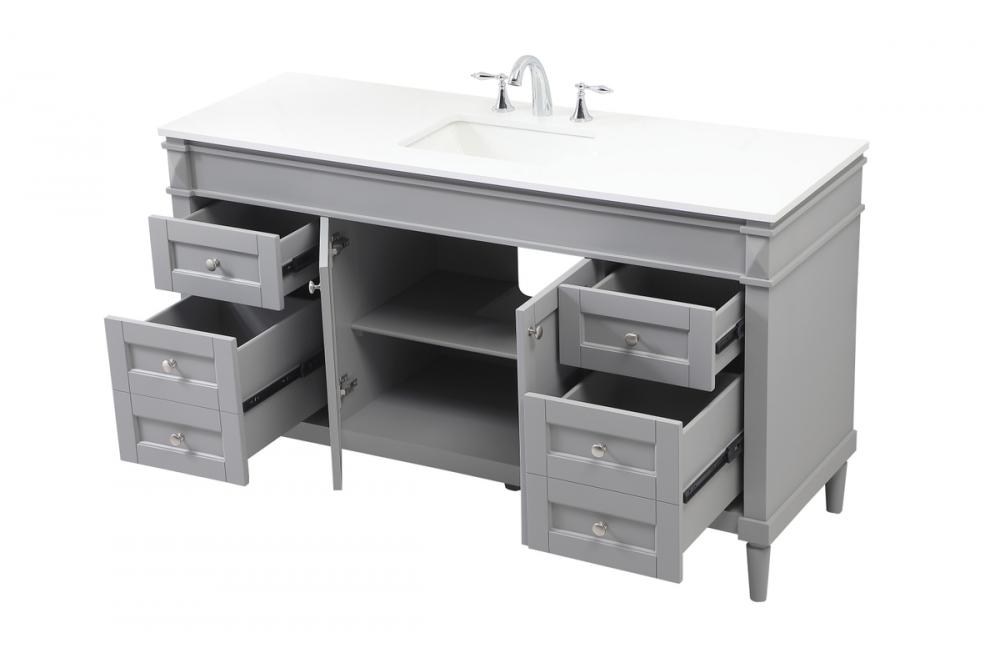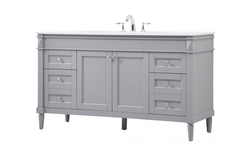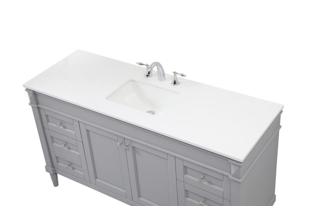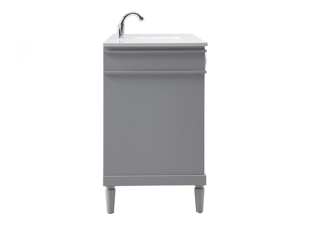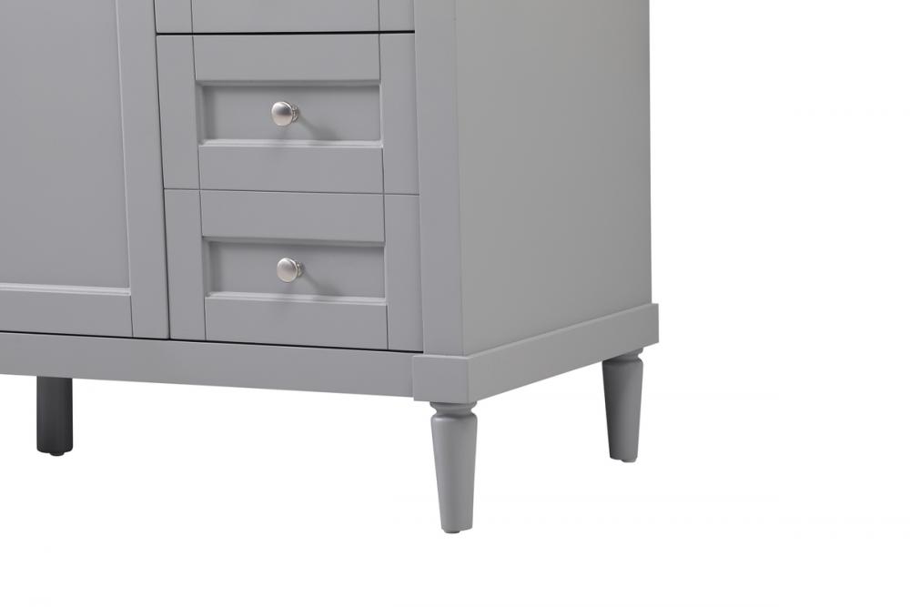 This transitional vanity is a beautiful piece of bathroom furniture will look amazing in your design scheme. The cabinet features a shaker style smooth door panel with simple round knobs and soft close hinges provide ample room for accessories. Packed with multiple side drawers with soft close glides for added comfort and full access to bath supplies. Convenient deep drawer stores all of your tall bath essentials. Constructed of engineered wood and solid wood legs with hand painted finish. The durable engineered marble countertop is a versatile material in an ivory white finish. Minor assembly of the legs needed to get this vanity up and running.