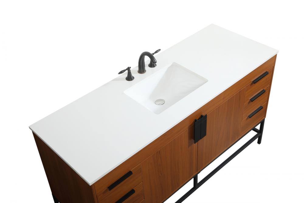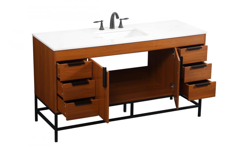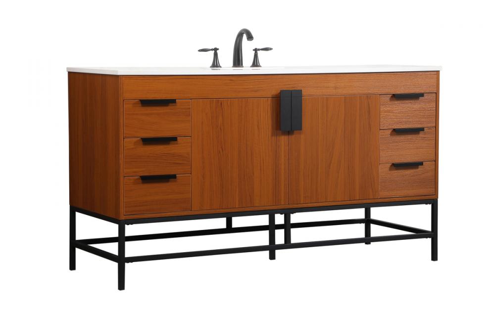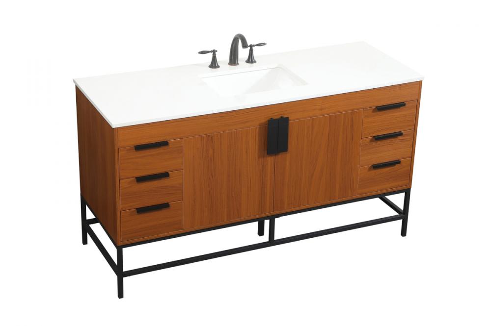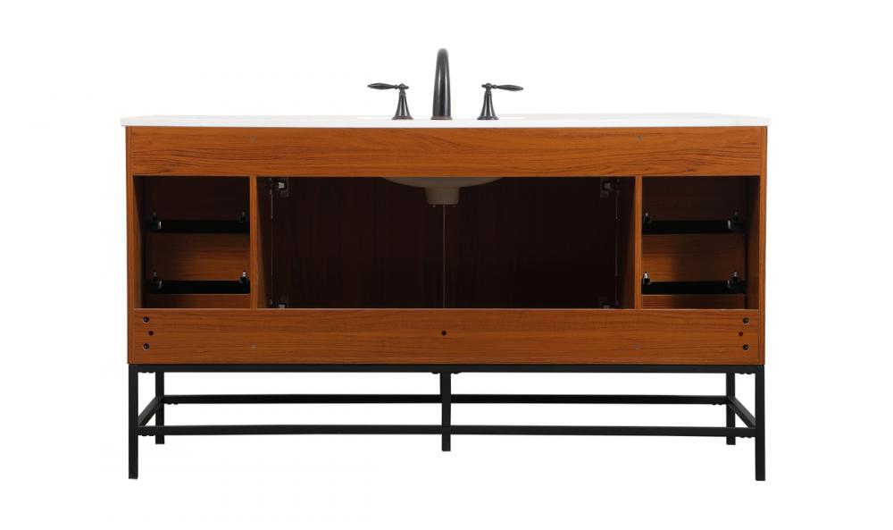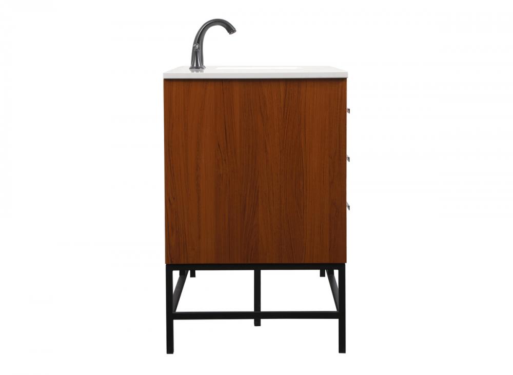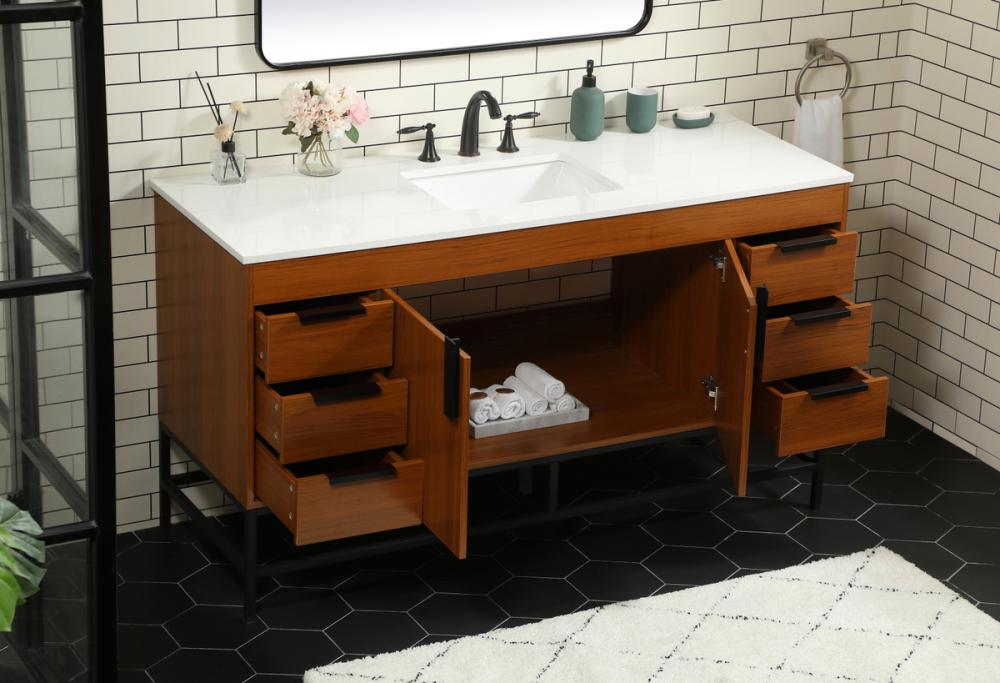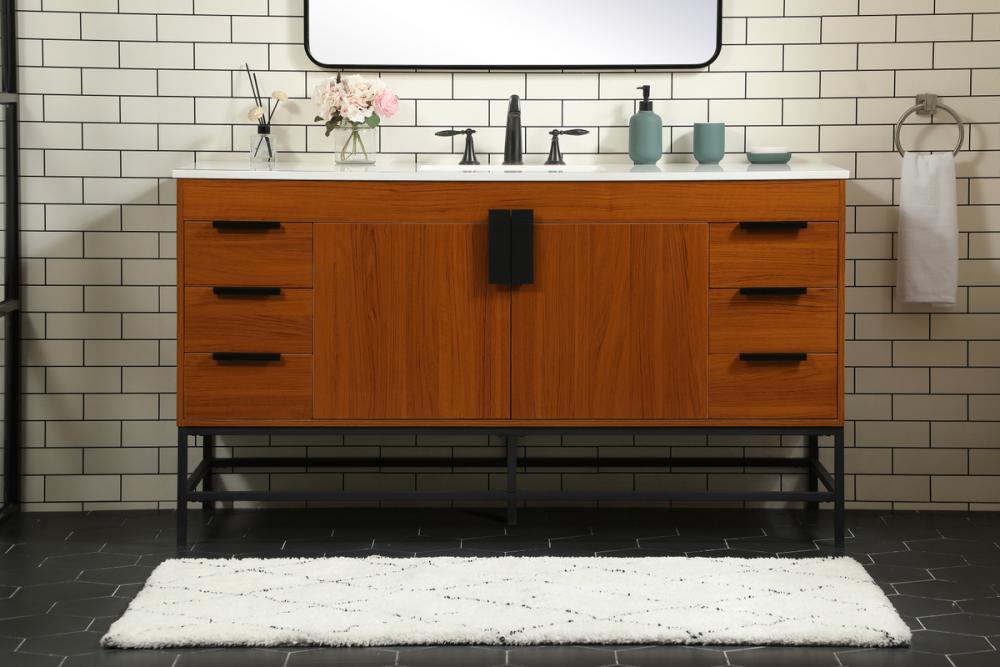 This vanity is a sleek-looking piece of bathroom furniture that is easy to incorporate into your design scheme. The cabinet features a smooth door panel with an oversized steel handle and soft close hinges provide ample room for accessories. Constructed of engineered wood, the powder-coated metal rod legs are an urban industrial look that we love. Minor assembly of the metal legs needed to get this vanity up and running.