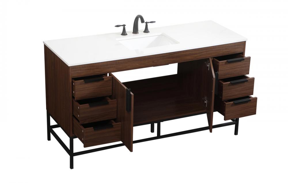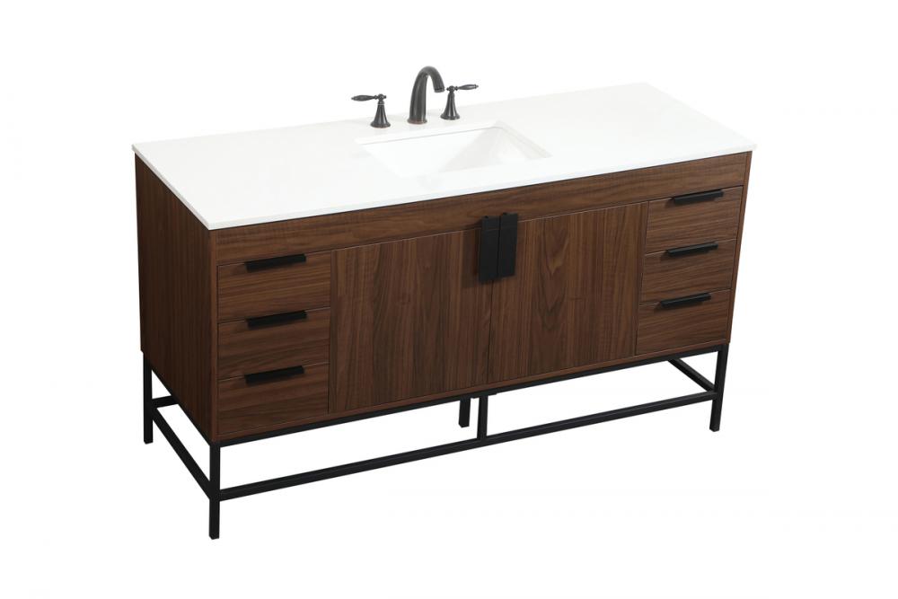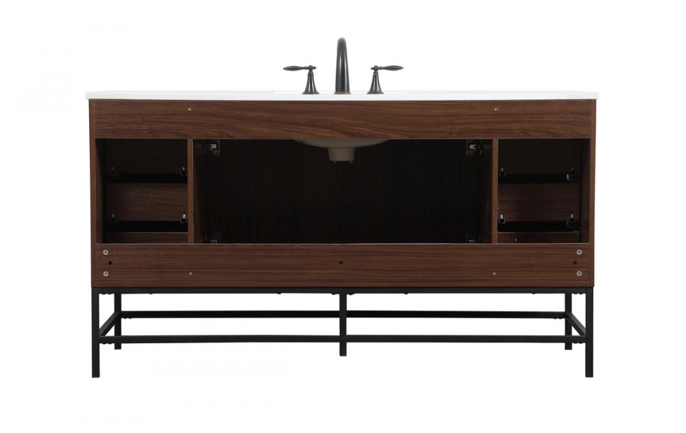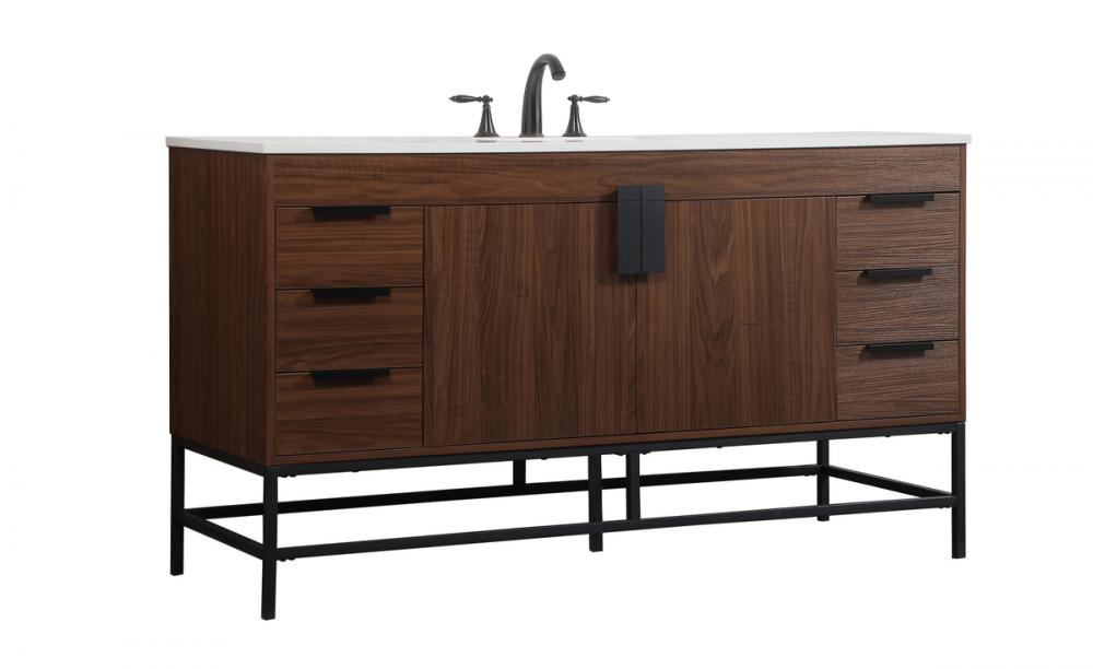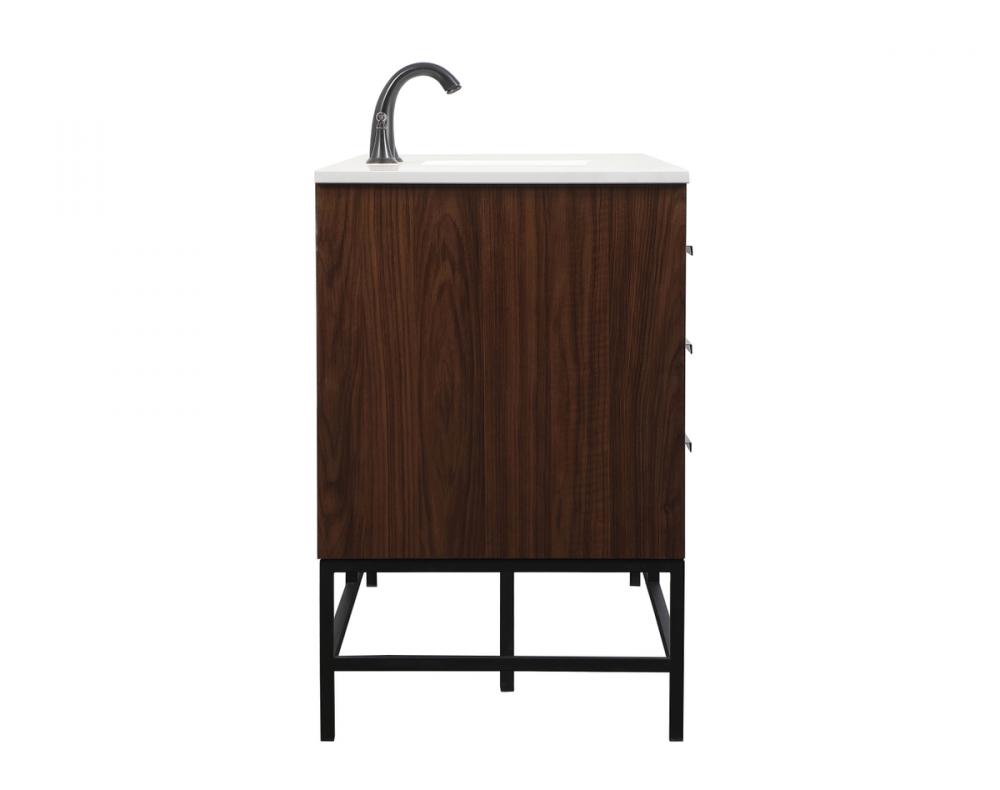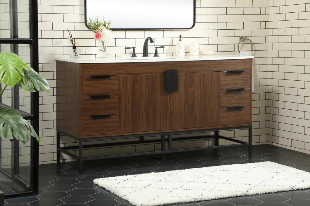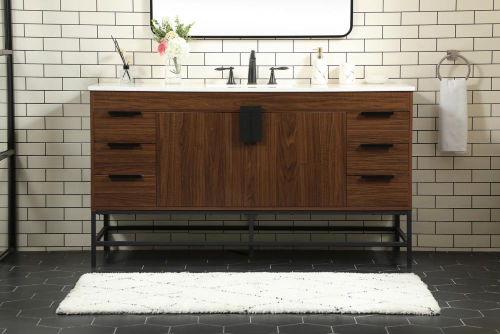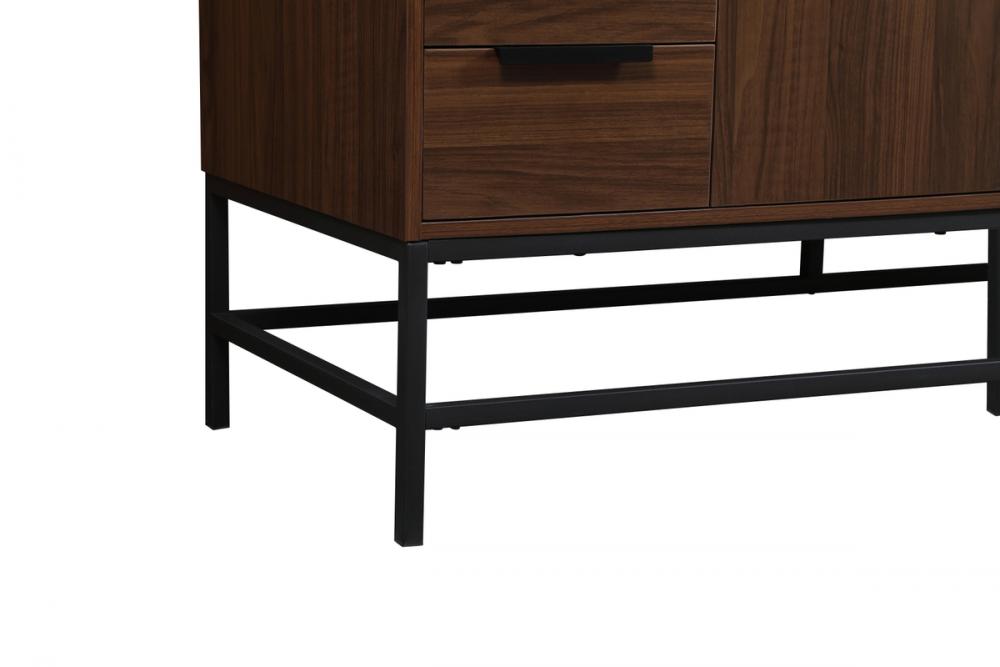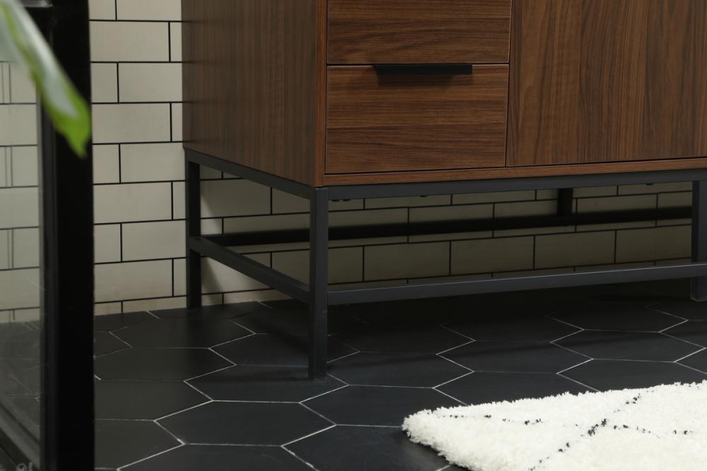 This vanity is a sleek-looking piece of bathroom furniture that is easy to incorporate into your design scheme. The cabinet features a smooth door panel with an oversized steel handle and soft close hinges provide ample room for accessories. Constructed of engineered wood, the powder-coated metal rod legs are an urban industrial look that we love. Minor assembly of the metal legs needed to get this vanity up and running.