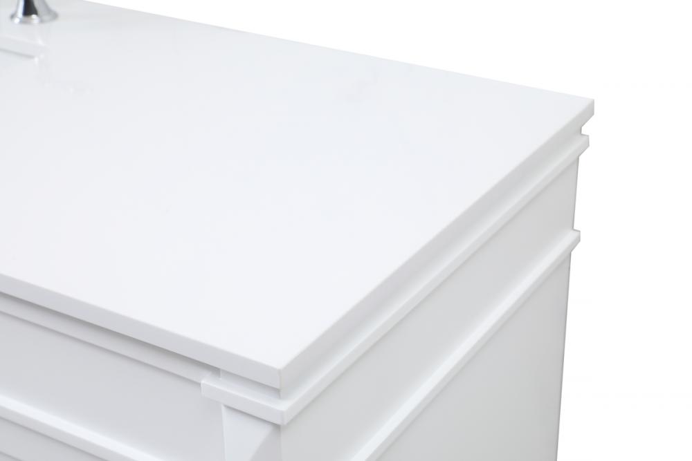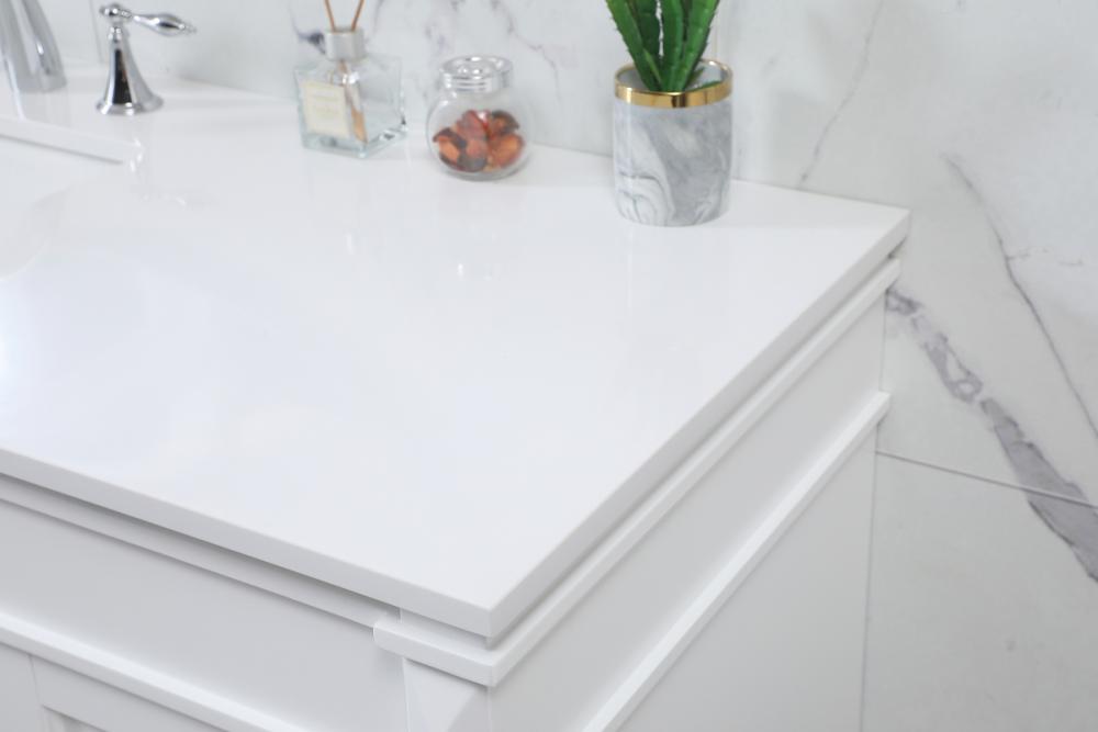 Crafted with durable engineered marble top in ivory white finish and vanity base is hand painted