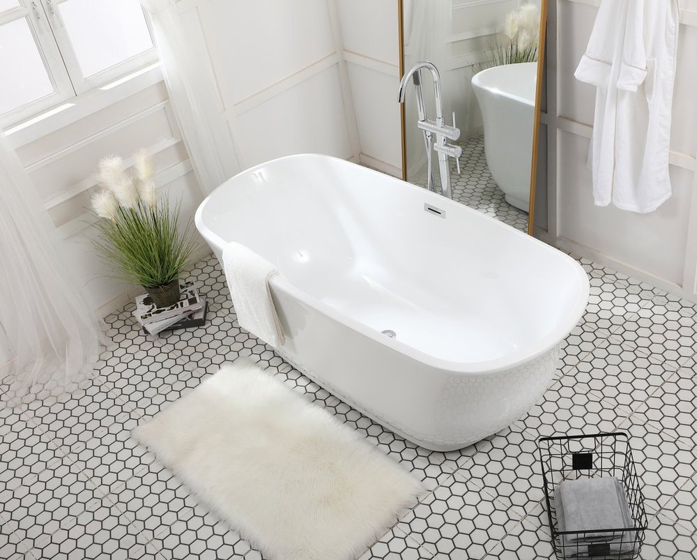 Unwind yourself from the busy day and have a good soak in the tub. Whether you light some candles and read, or peacefully mediate, this 67" free standing tub will surely help soothe your soul. The glossy white finish of this free-standing tub adds a clean contemporary flair to any bathroom.