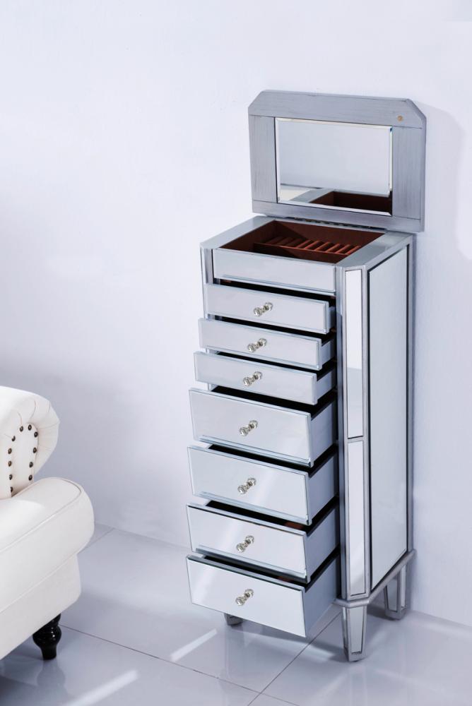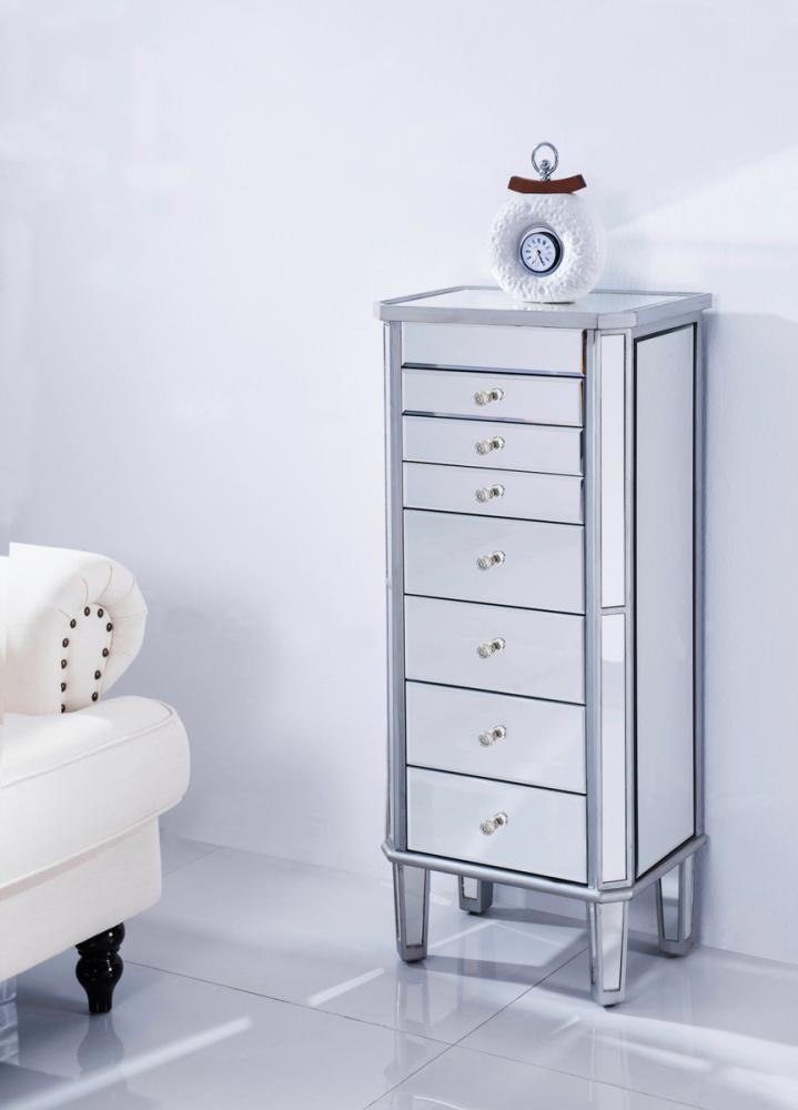 7 Drawer Jewelry Armoire 18 in. x 12 in. x 41 in. in silver Clear