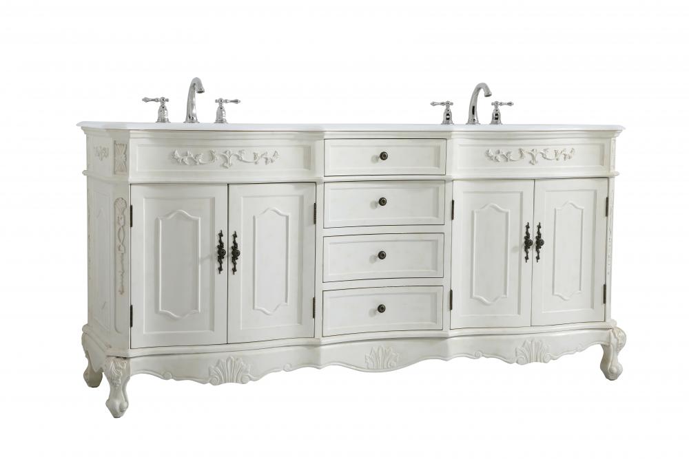 72 inch Double Bathroom vanity in Antique White with ivory white engineered marble