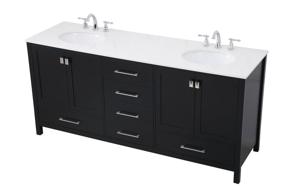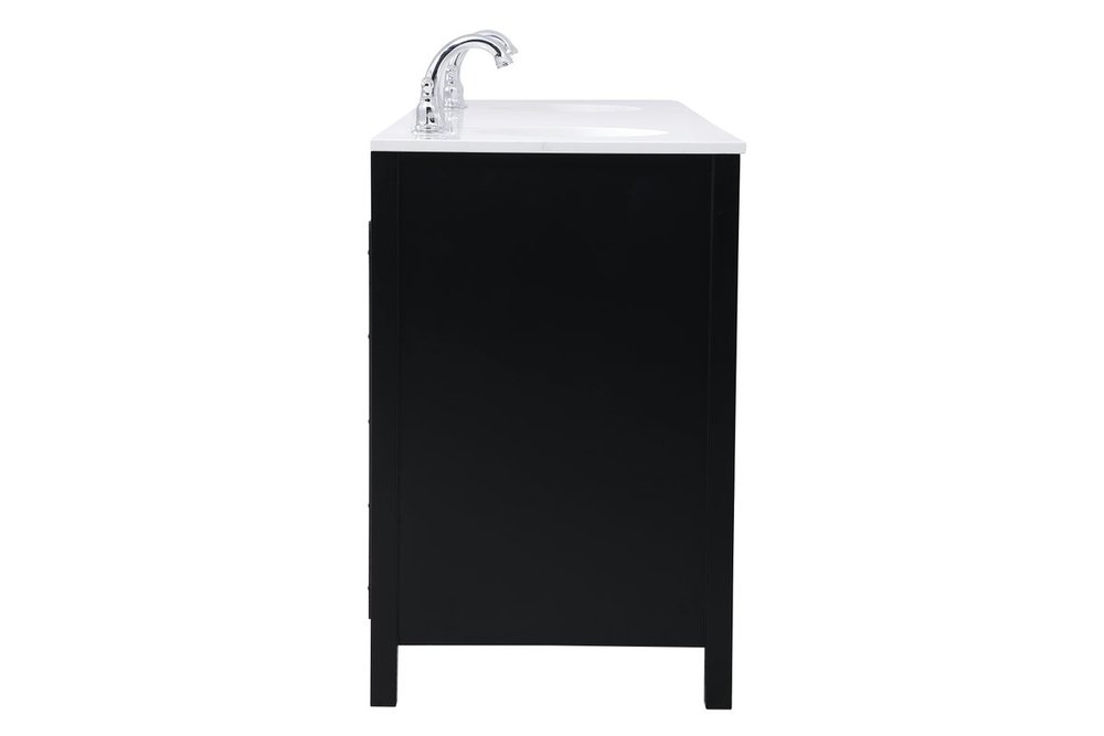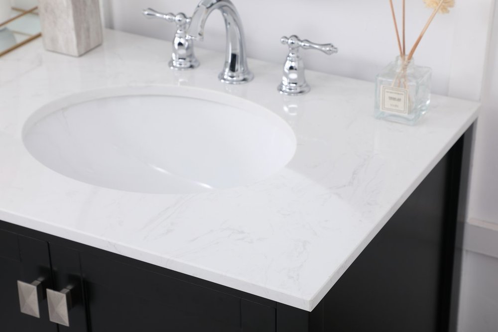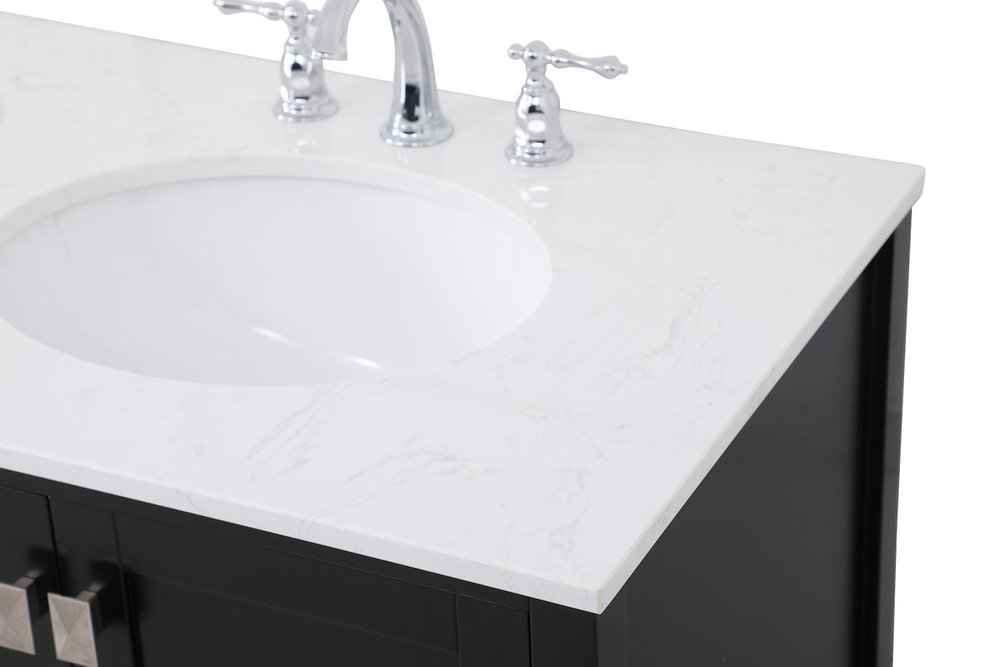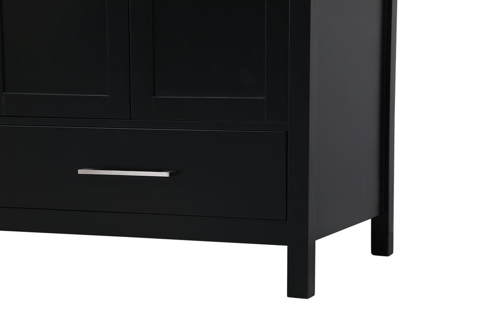 Never compromise beauty--the Irene collection stunning vanity in a black finish will add lovely sophistication and complement any bathroom or powder room, while utilizing its charm and function to provide you with ample storage spaces. Brushed nickel pulls gently adorn the minimalist cabinet doors and drawers at the base, allowing for you to store away your bathroom essentials. The calacatta engineered marble countertop, porcelain undermount sink, dignified subtle engravings on the side edges, and squared legs all come together to create contemporary beauty. Work with your space, and design a beautiful room, no matter the size.