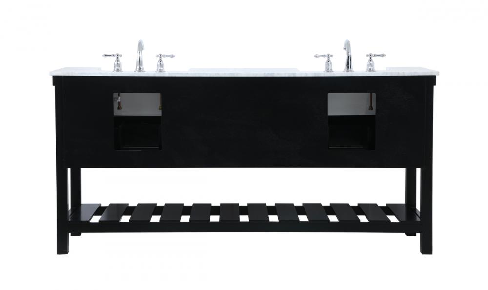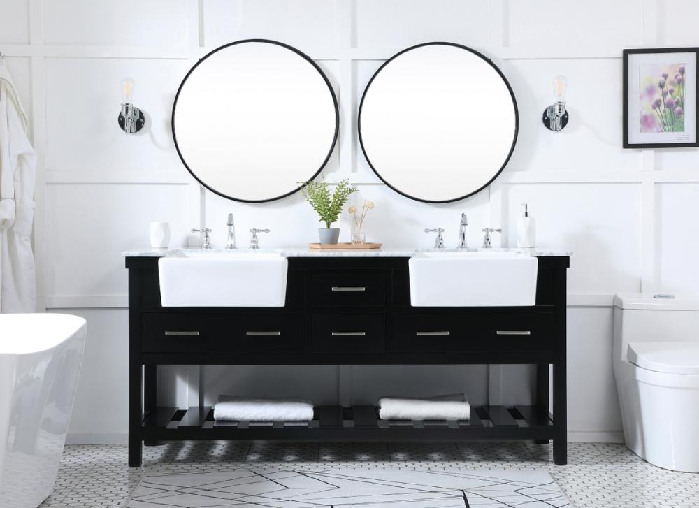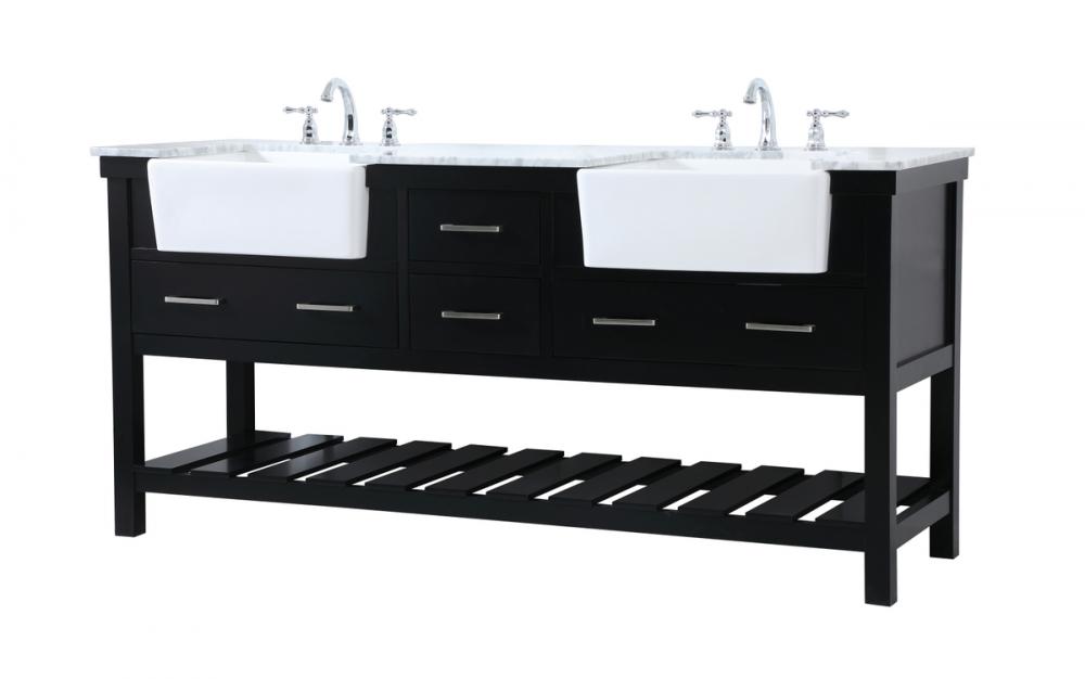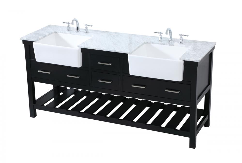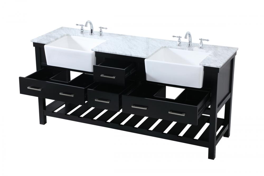 Make the most of your space with this farmhouse style bathroom vanity. Complements well with its beautiful finish, carrara white marble countertop, and the contemporary slender handle bar that sits on the functional drawers with soft closing mechanism, allowing you to store an assortment of bathroom essentials. The lower shelf makes it the perfect space to hold new towels for your guests. This stylish vanity ensures both form and function in your bathroom for you and your guests.