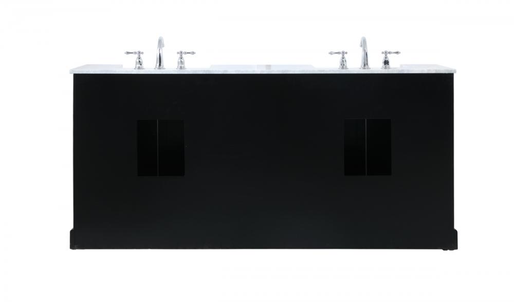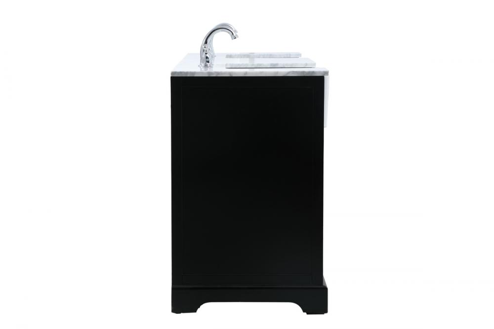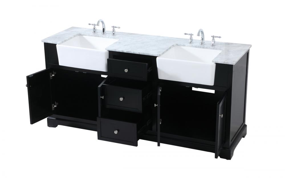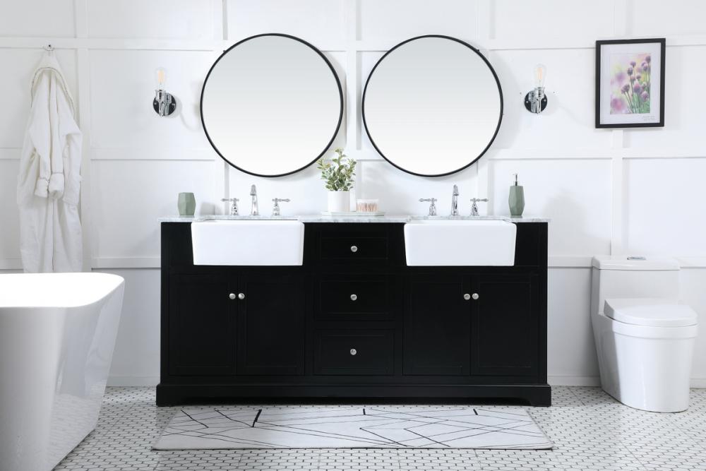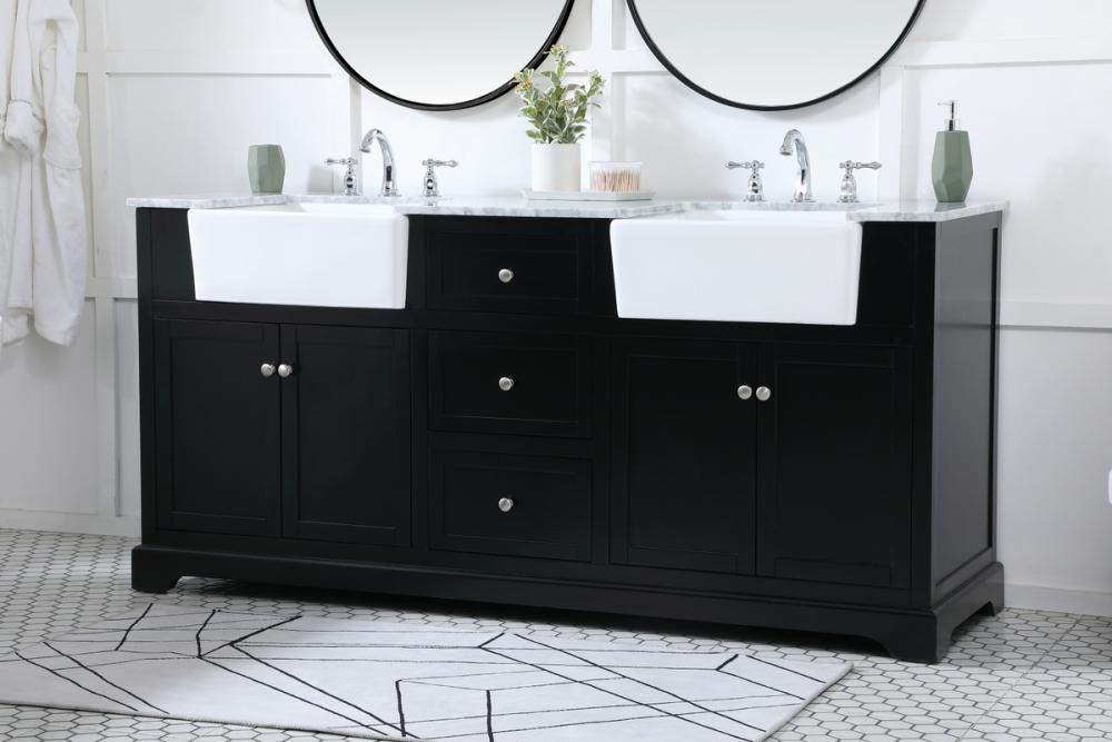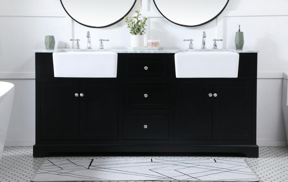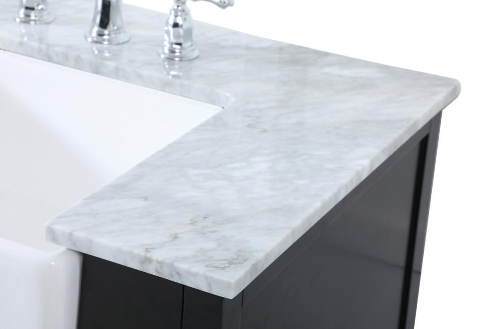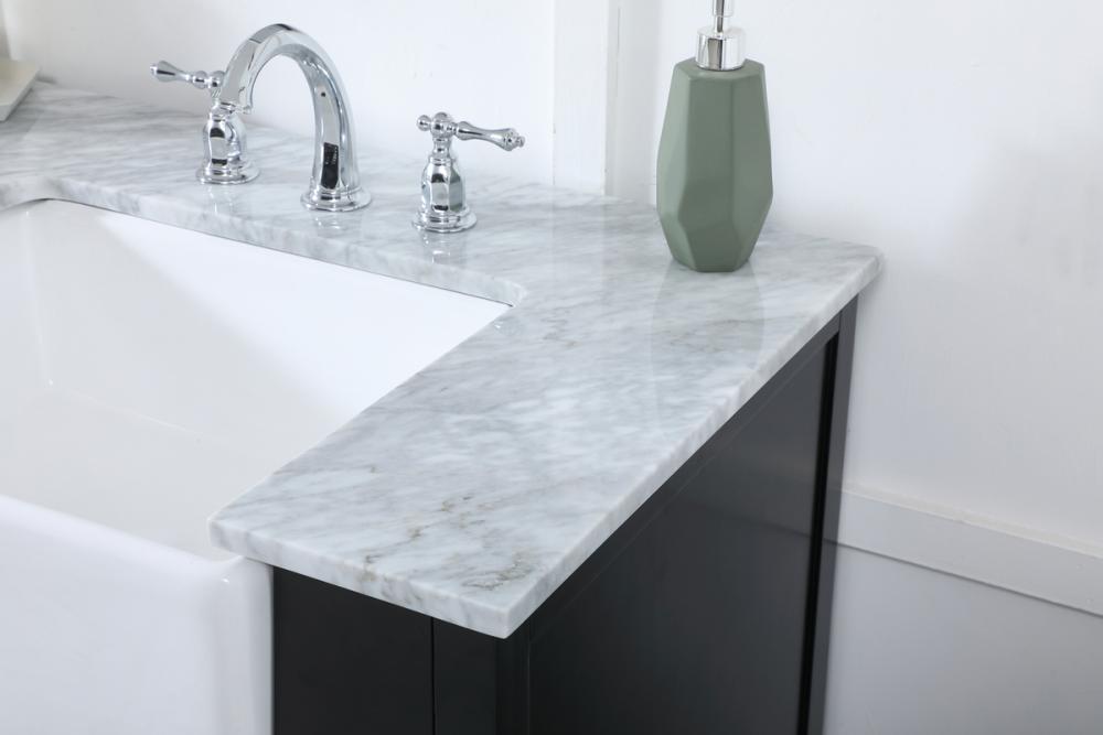 Make the most of your space with this farmhouse style bathroom vanity. Complements well with its beautiful finish, carrara white marble countertop, and the contemporary slender handle bar that sits on the functional drawers with soft closing mechanism, allowing you to store an assortment of bathroom essentials. This stylish vanity ensures both form and function in your bathroom for you and your guests.
