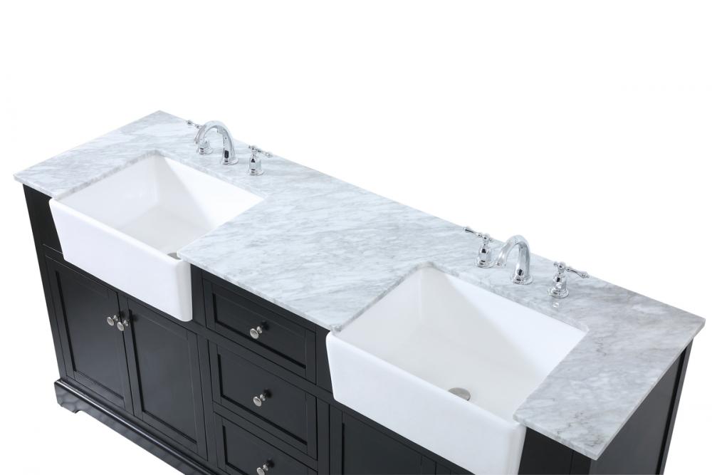 Comes with an apron porcelain sink and durable marble stone top in carrara white finish