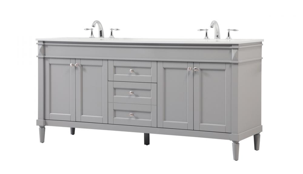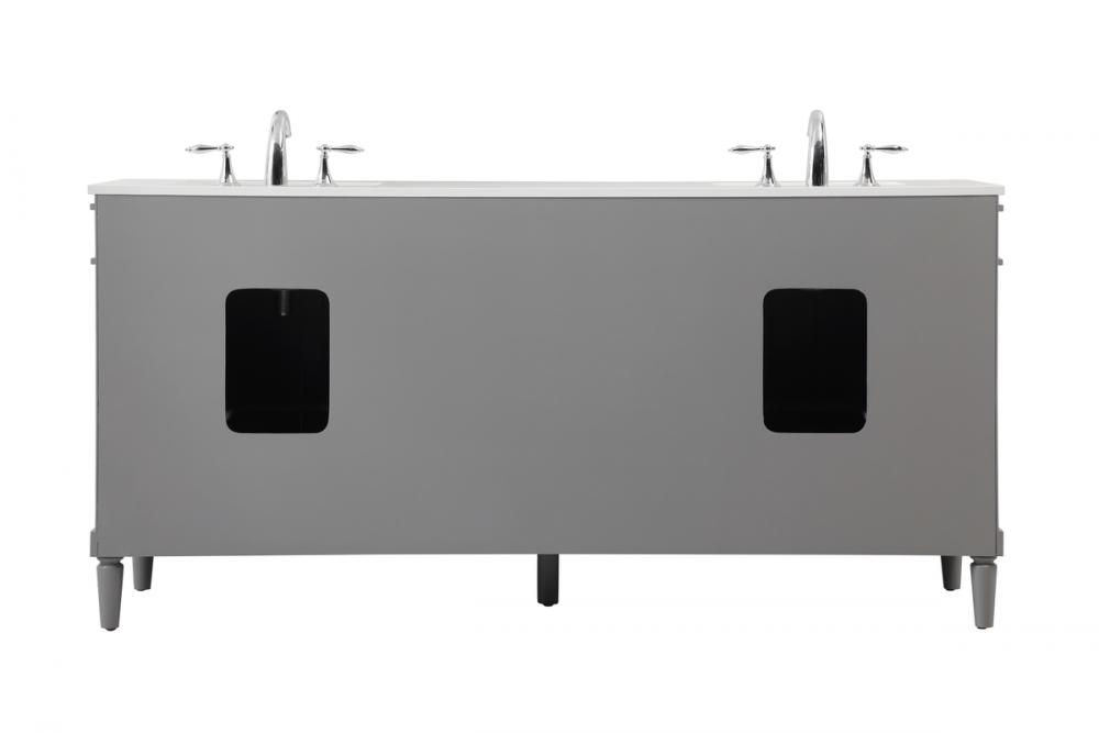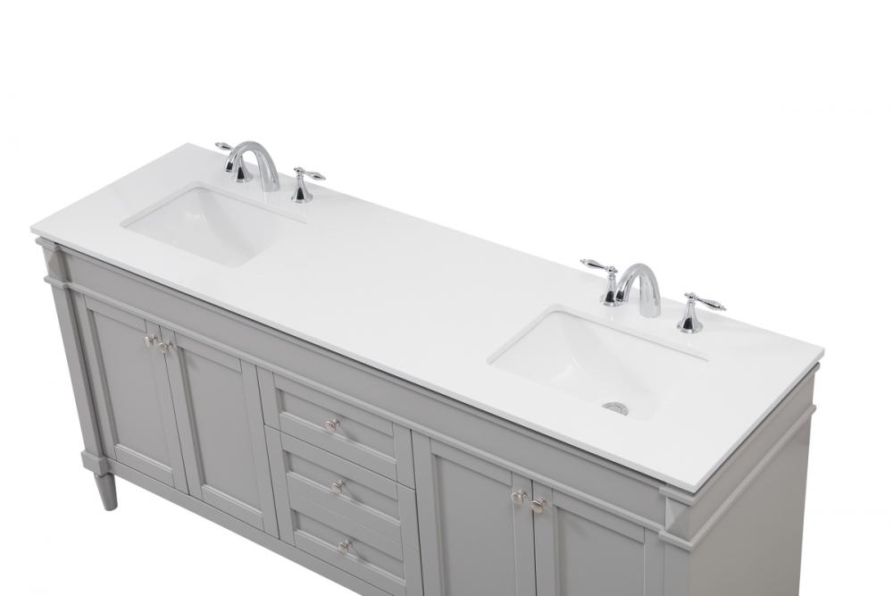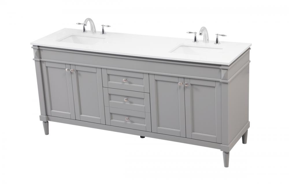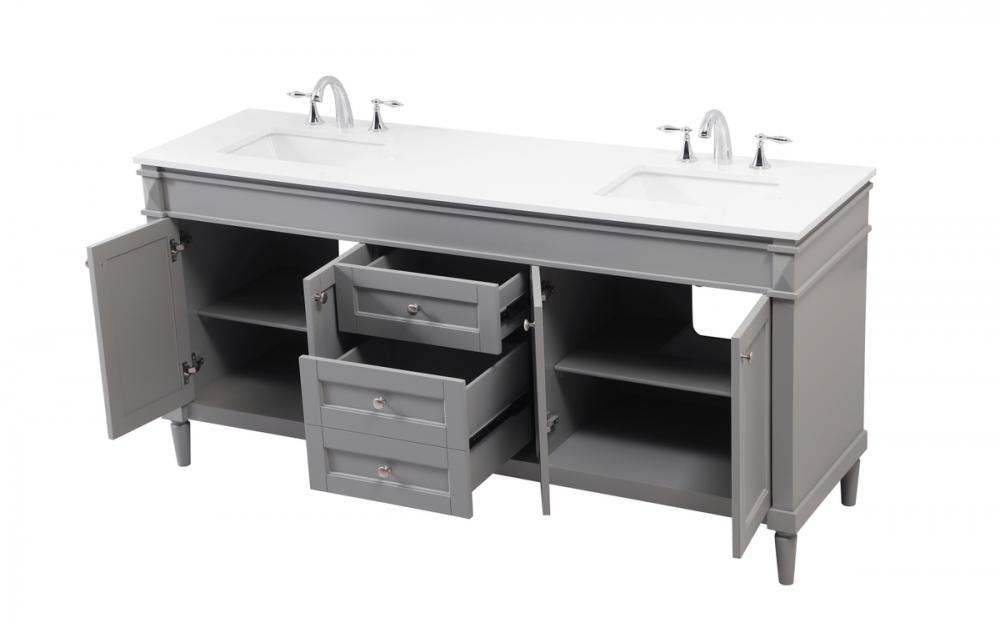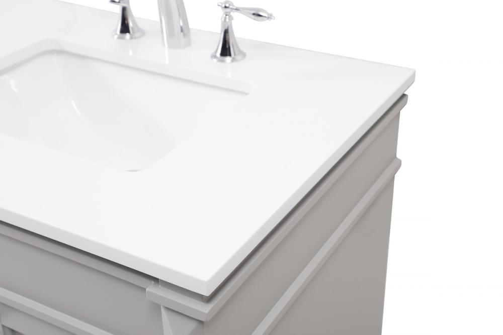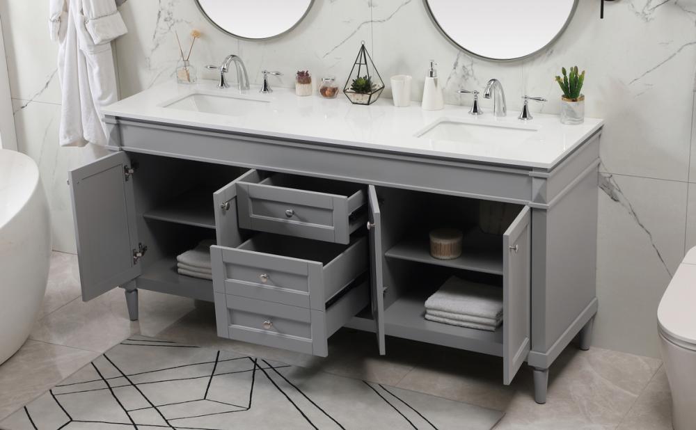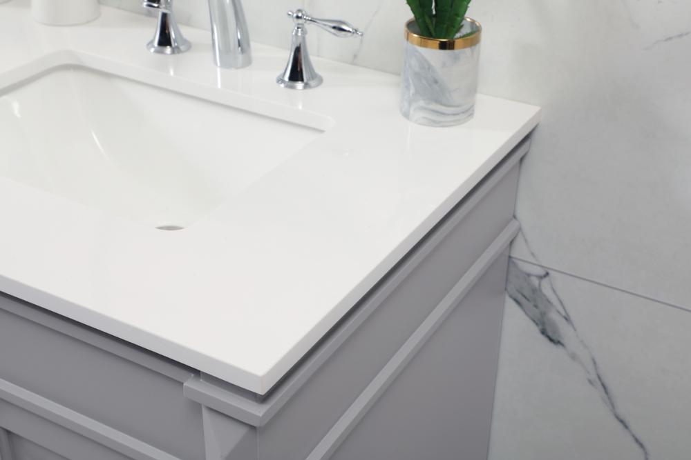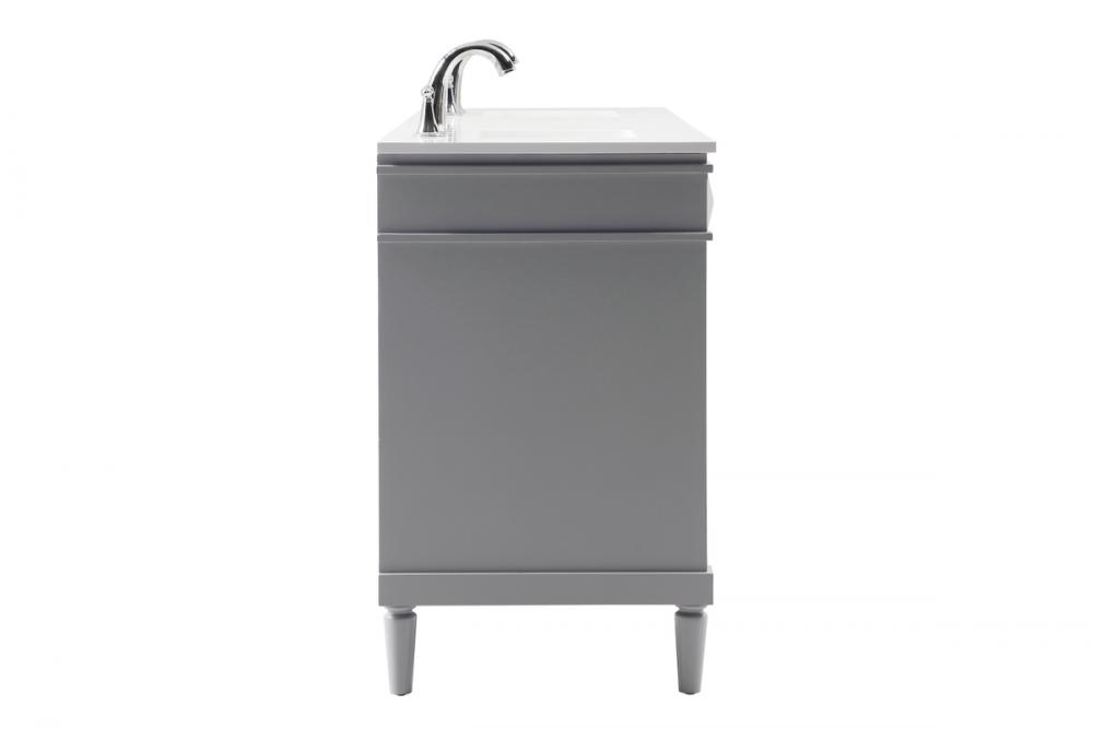 This transitional vanity is a beautiful piece of bathroom furniture will look amazing in your design scheme. The cabinet features a shaker style smooth door panel with simple round knobs and soft close hinges provide ample room for accessories. Packed with multiple side drawers with soft close glides for added comfort and full access to bath supplies. Convenient deep drawer stores all of your tall bath essentials. Constructed of engineered wood and solid wood legs with hand painted finish. The durable engineered marble countertop is a versatile material in an ivory white finish. Minor assembly of the legs needed to get this vanity up and running.