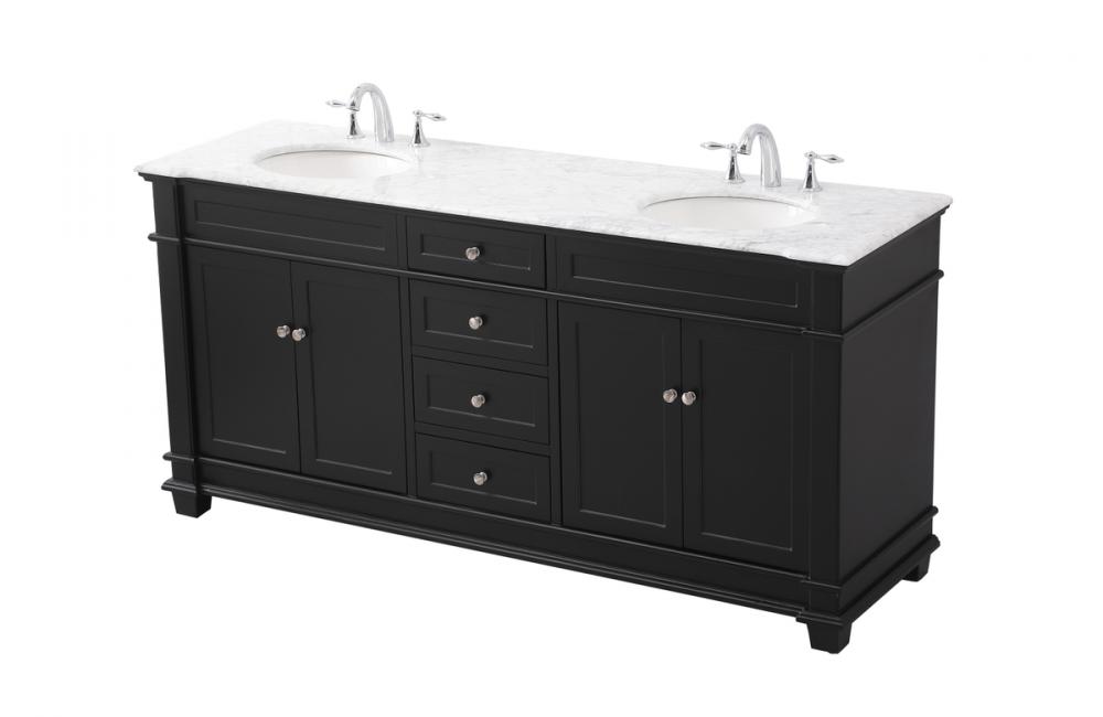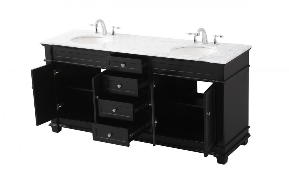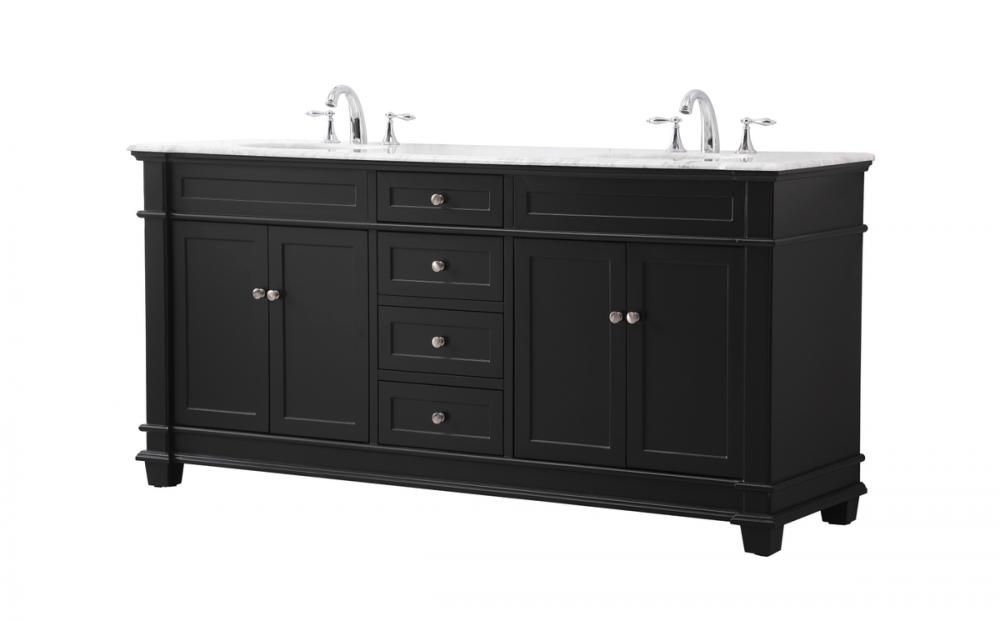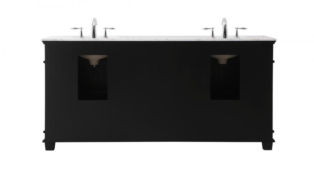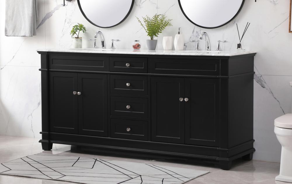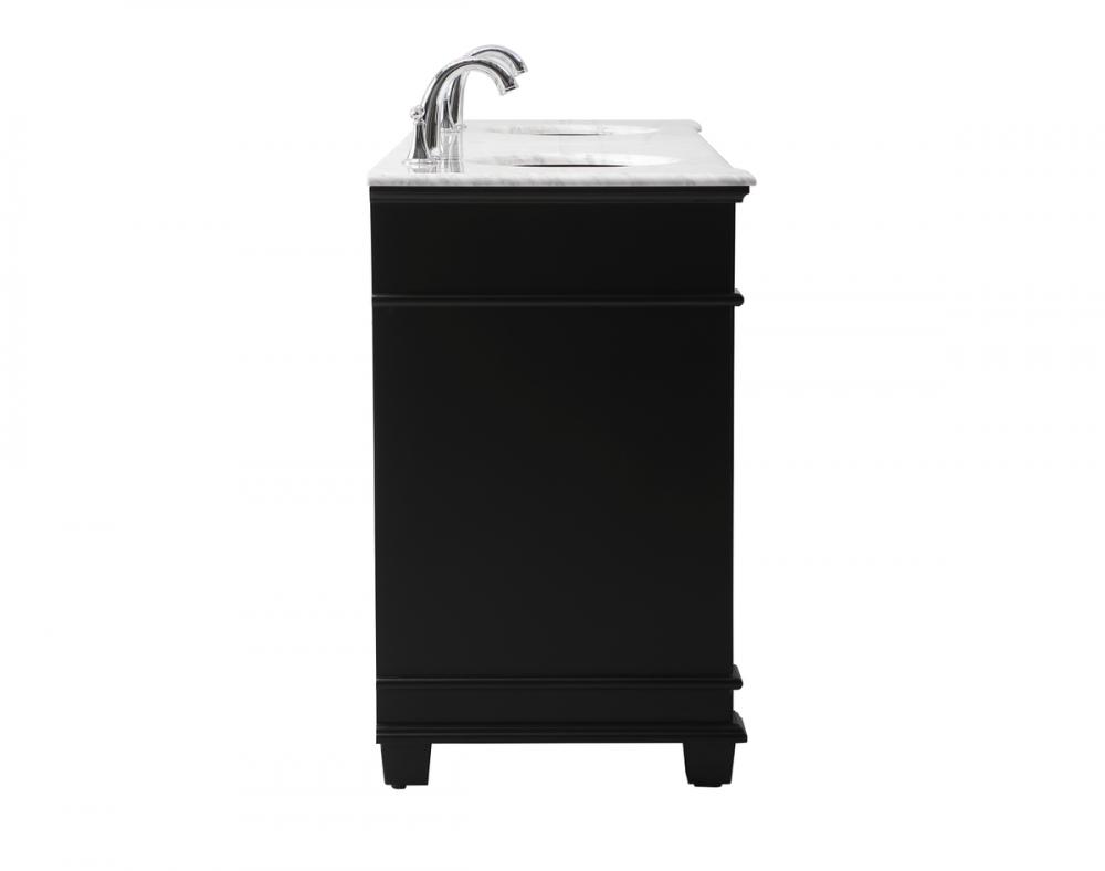 The Wesley Collection vanity cabinet will bring a settle pop of color into your bathroom. The flattering finish is a sophisticated color which creates a calming atmosphere in the room. The brushed nickel knobs bring a vibrant touch to balance the vanity. With the detailed engravings, the cabinet catches eyes with its beautiful lining work. Open the cabinet doors to store what you desire and make use of the spacious area. To top it off, the Carrara white marble adds a luxury and modern finish to the countertop.