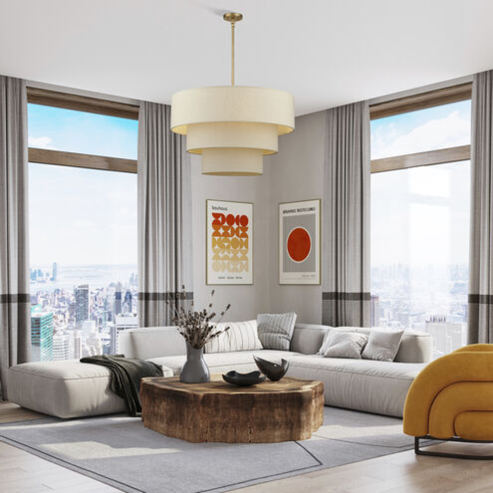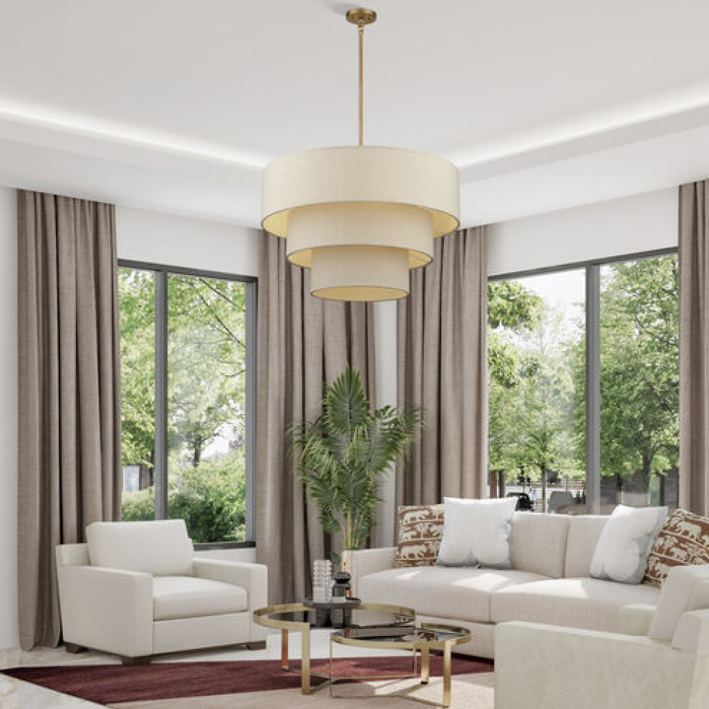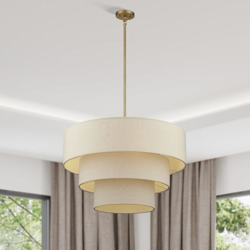 If you love the minimalist, natural aesthetic of mid-century modern design, you’ll adore the organic colors and the phenomenal illumination of the timeless Bellingham lighting collection. Stacked in double- and triple-tiered “wedding cake” style, the handcrafted hardback drum shades are completely finished with a soothing parchment color fabric, radiating warm, earthy ambient lighting. This versatile collection features an array of linear and pendant chandeliers, semi-flush mounts, ADA wall sconces and even a delightful little swing-arm wall lamp.
