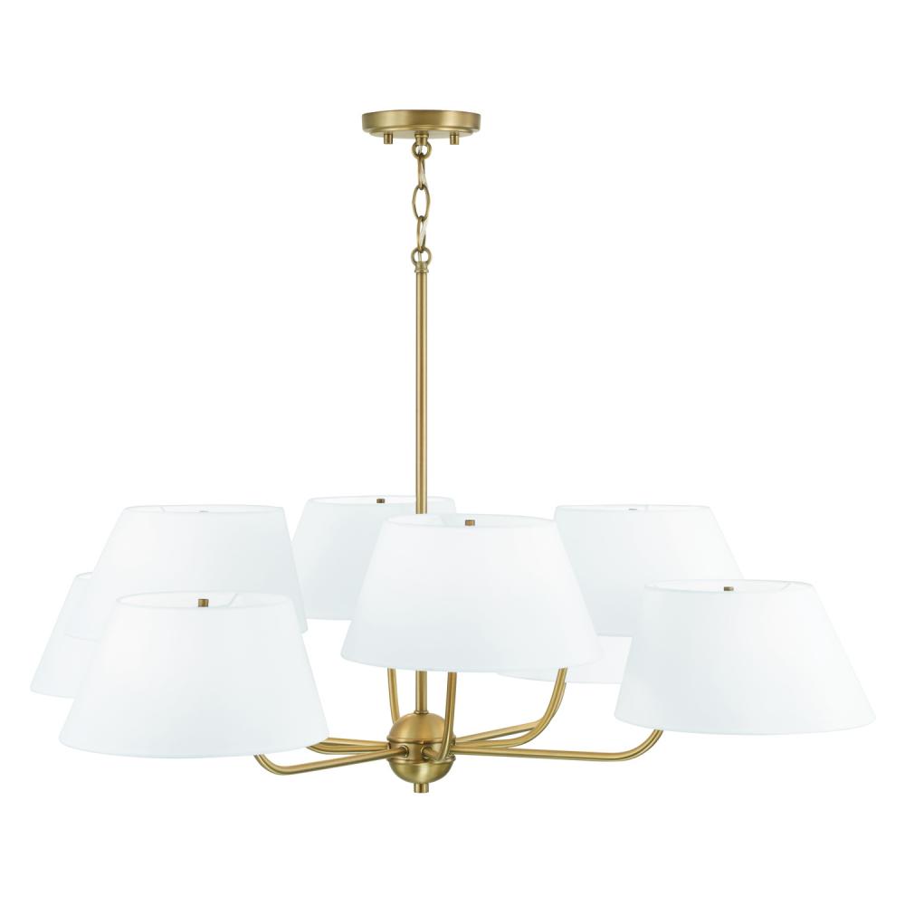 40"W x 21.5"H 8-Light Chandelier in Aged Brass with Offset White Fabric Shade
