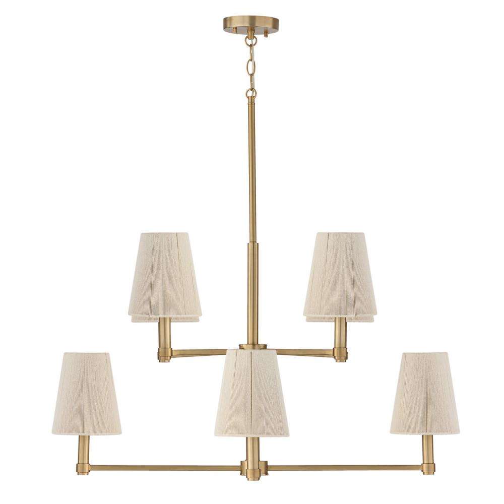 Naturally charming, the Mira Two-Tier Chandelier combines classic style with organic appeal. The Matte Brass finish adds an elegant shine to the simple silhouette, while the Bleached Natural Rope shades create soft dimension.