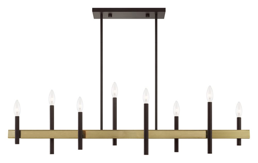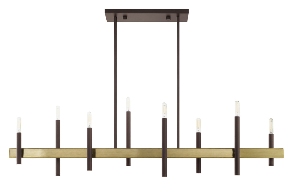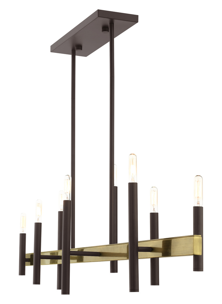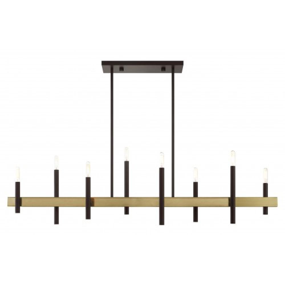 6 Light Satin Brass Extra Large Linear Chandelier with Bronze Accents