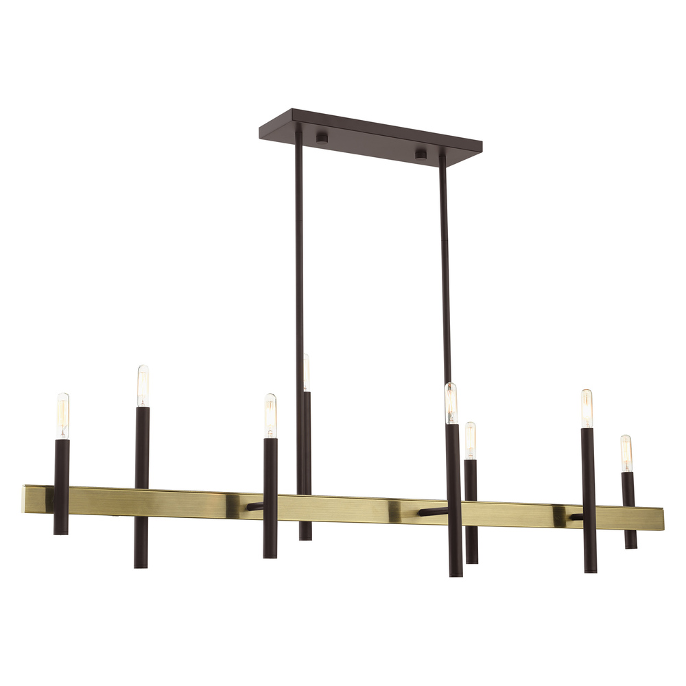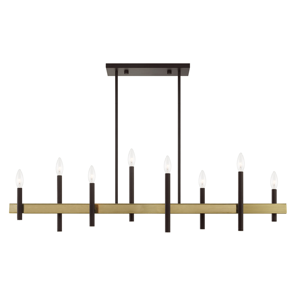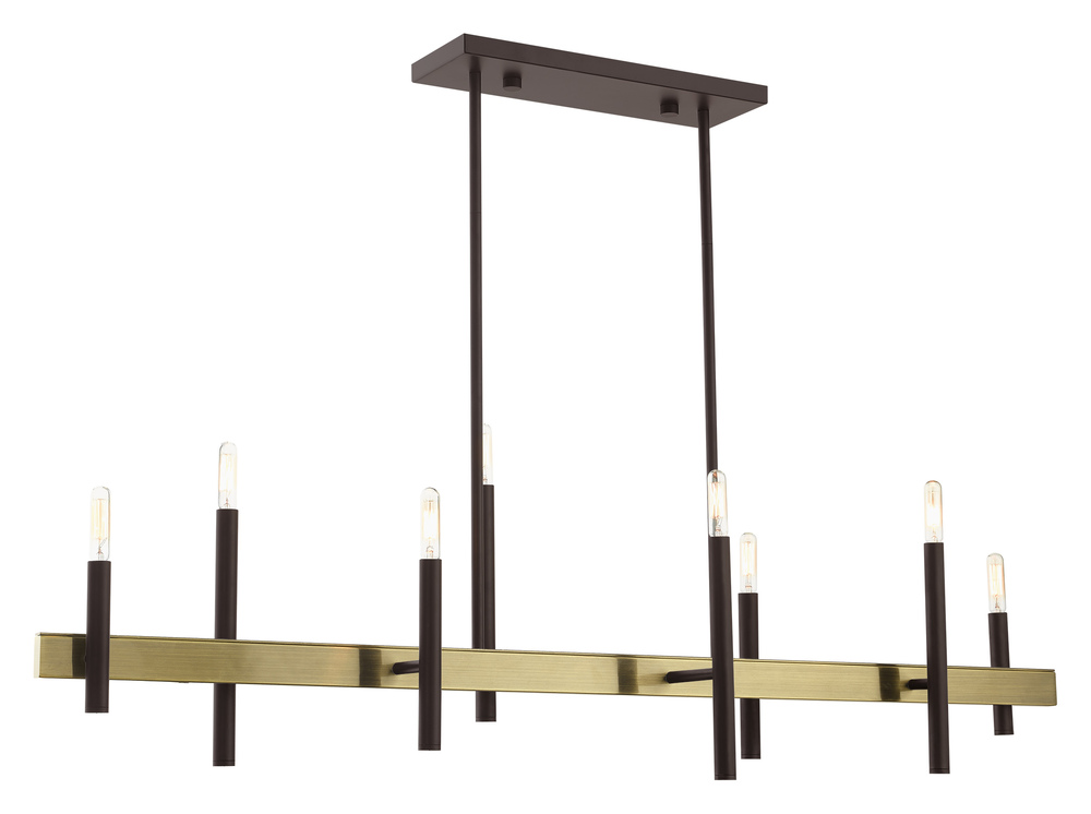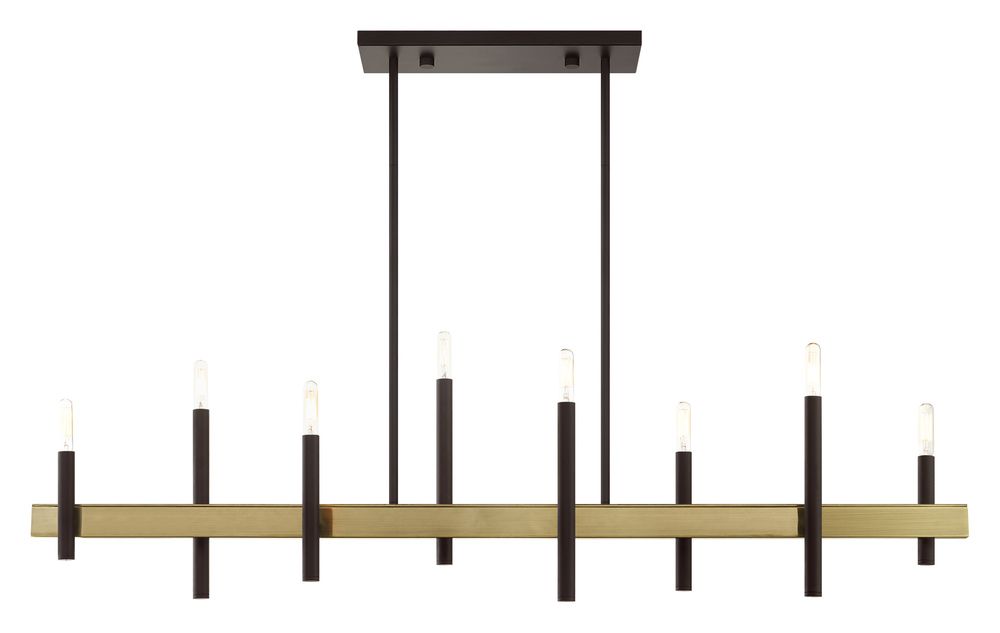 6 Light Satin Brass Extra Large Linear Chandelier with Bronze Accents