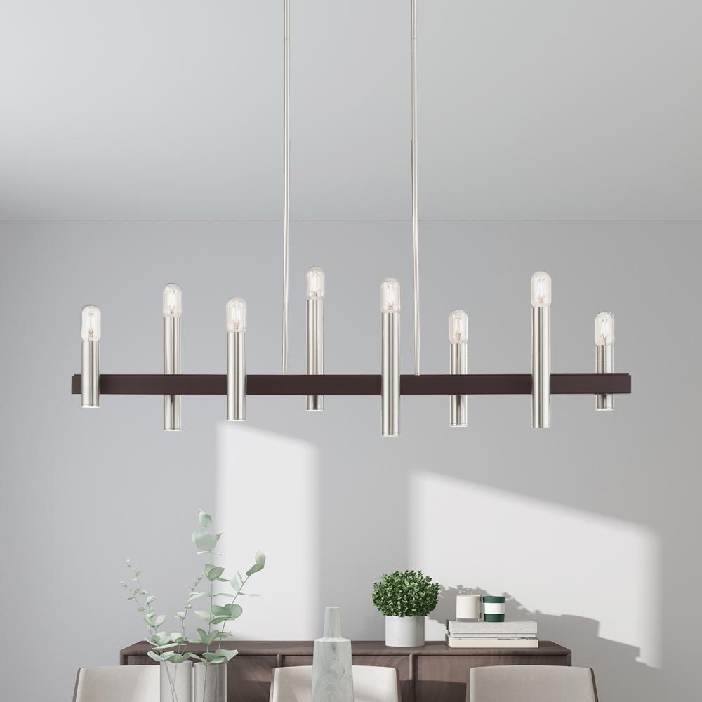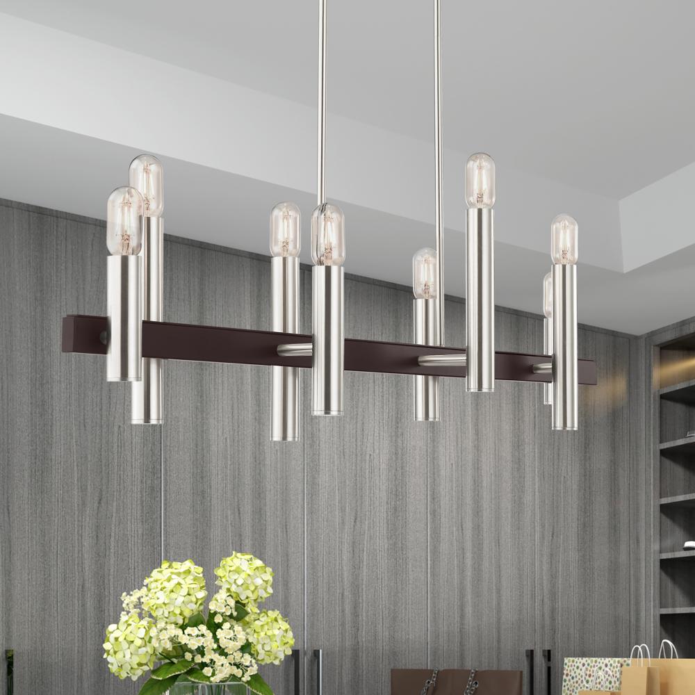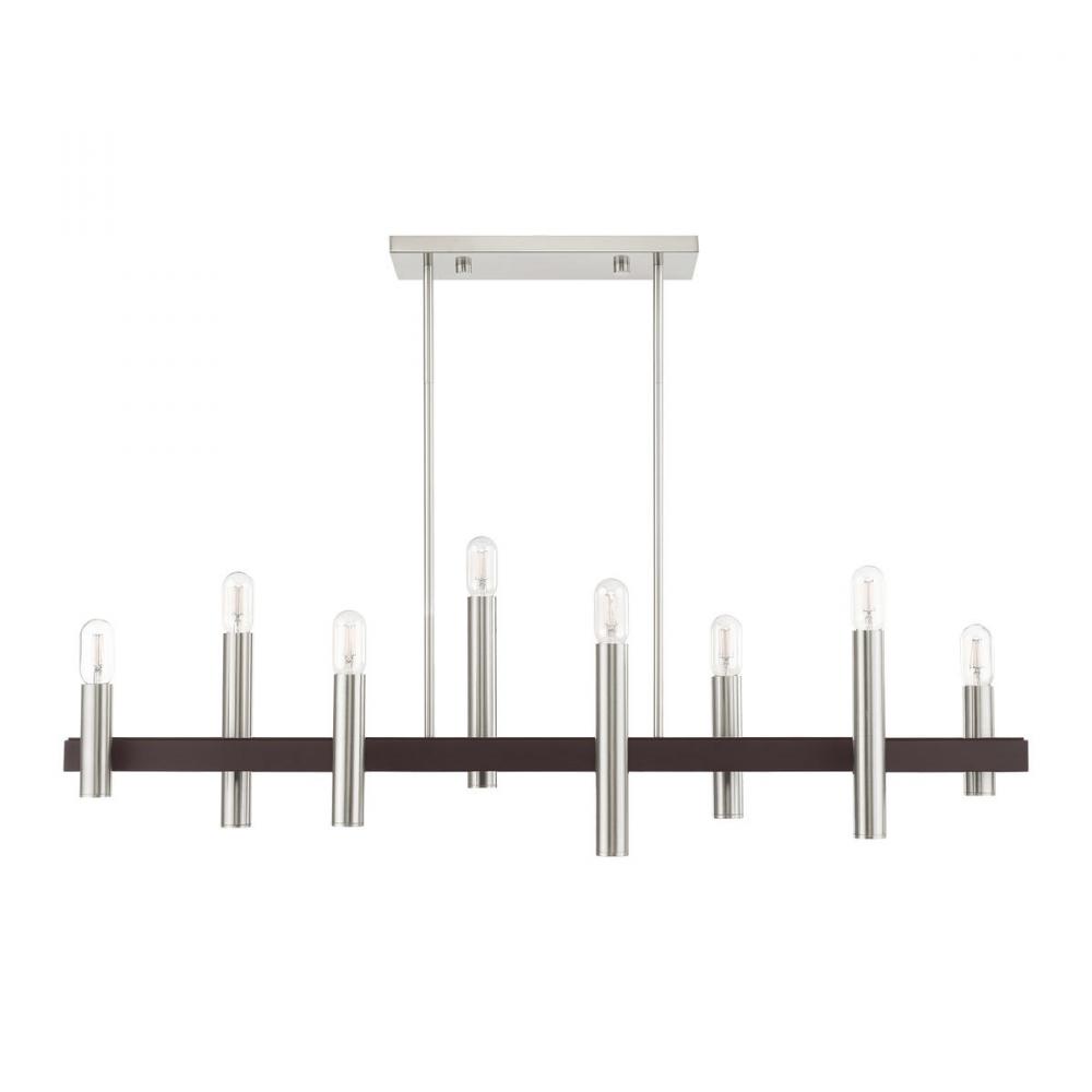 8 Lt Brushed Nickel & Bronze Linear Chandelier
