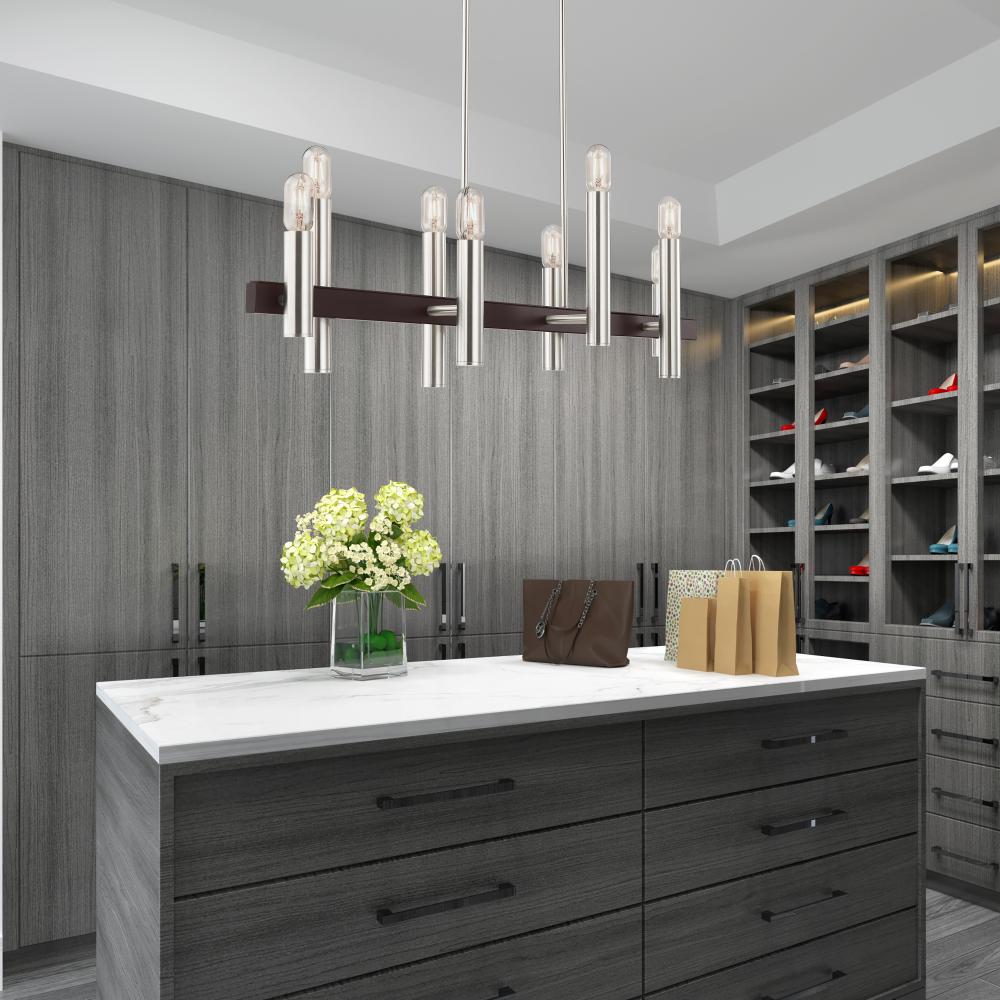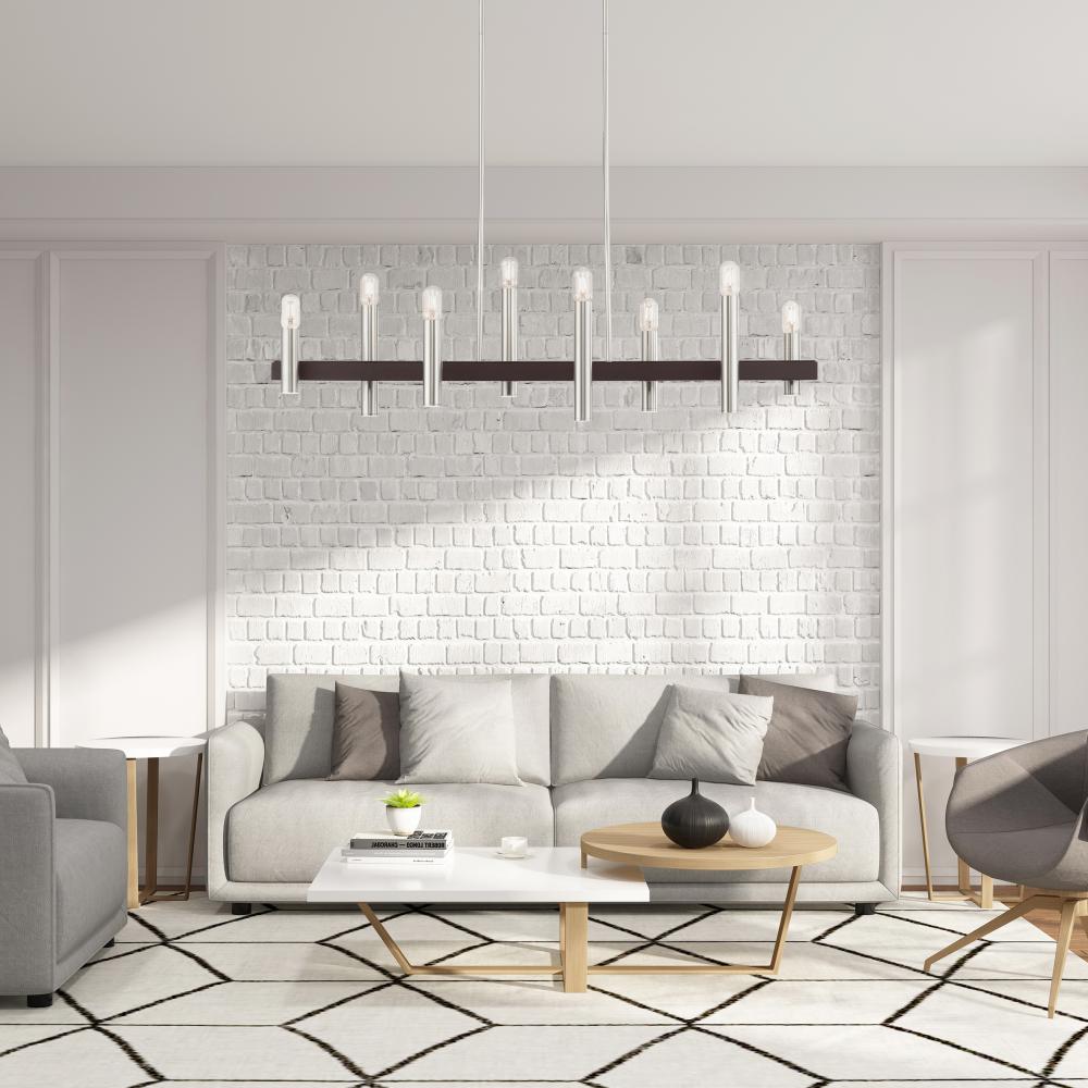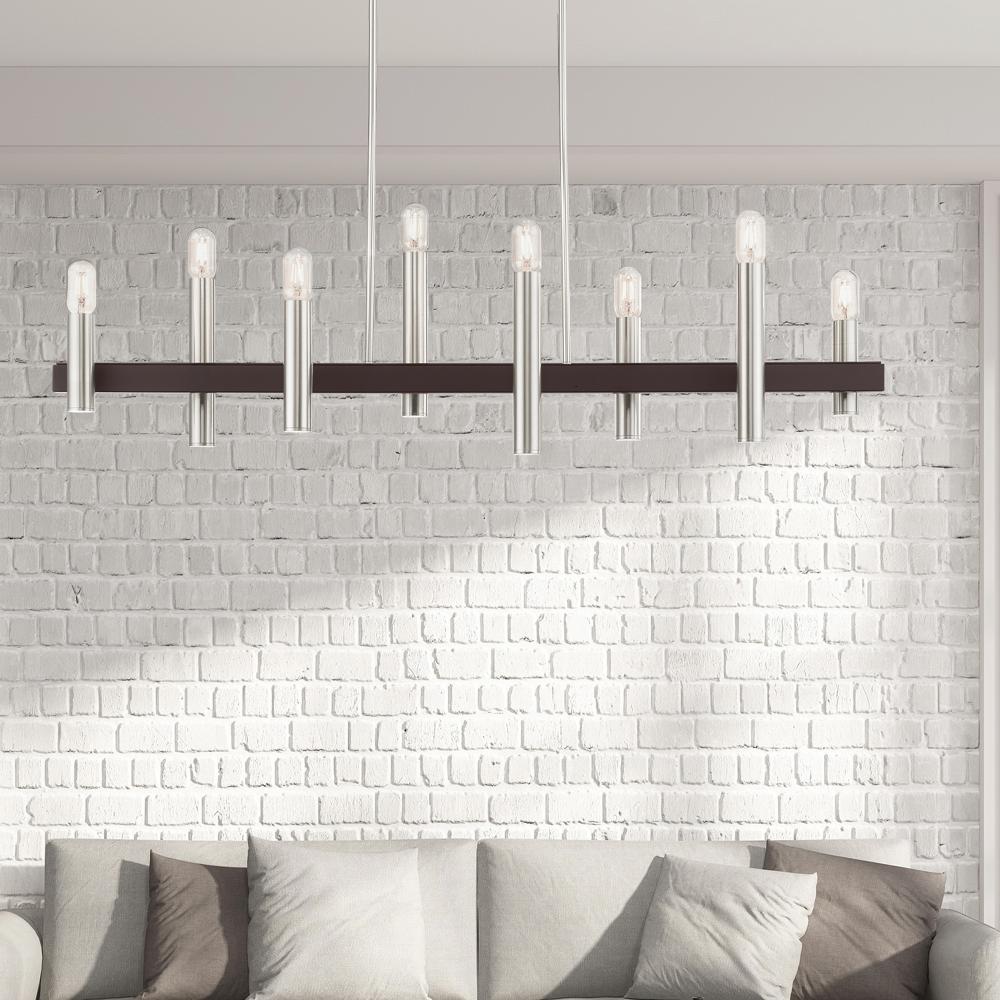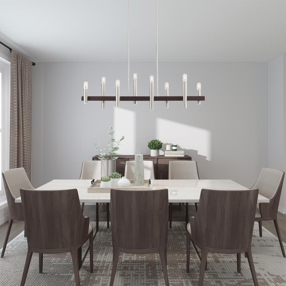 8 Lt Brushed Nickel & Bronze Linear Chandelier