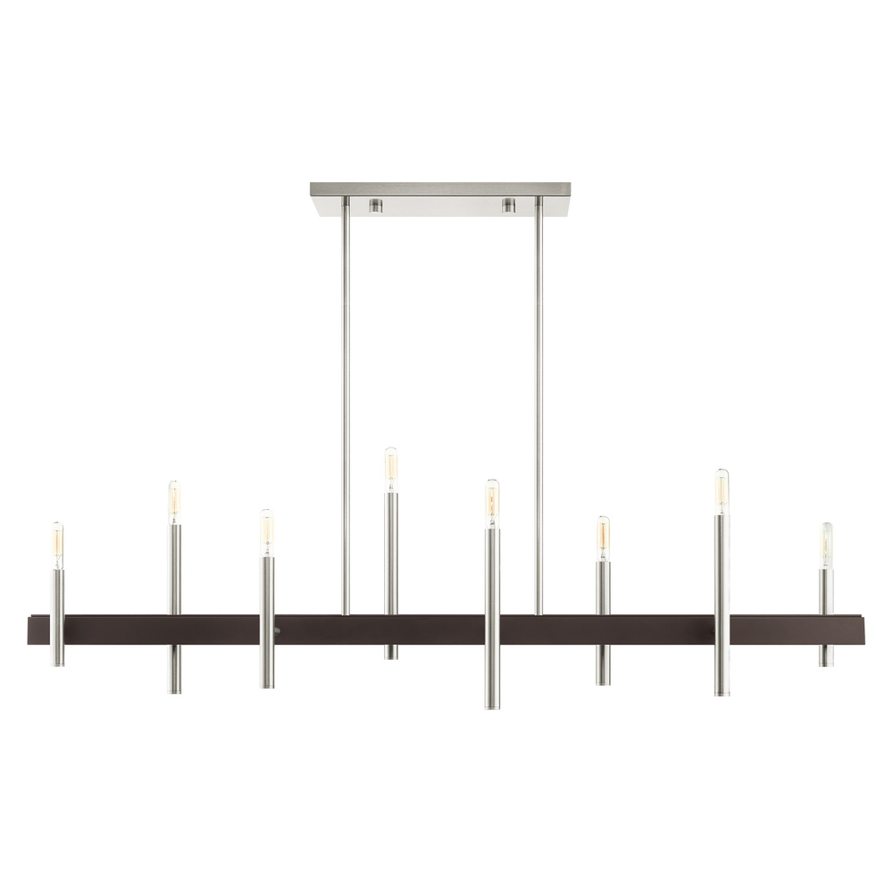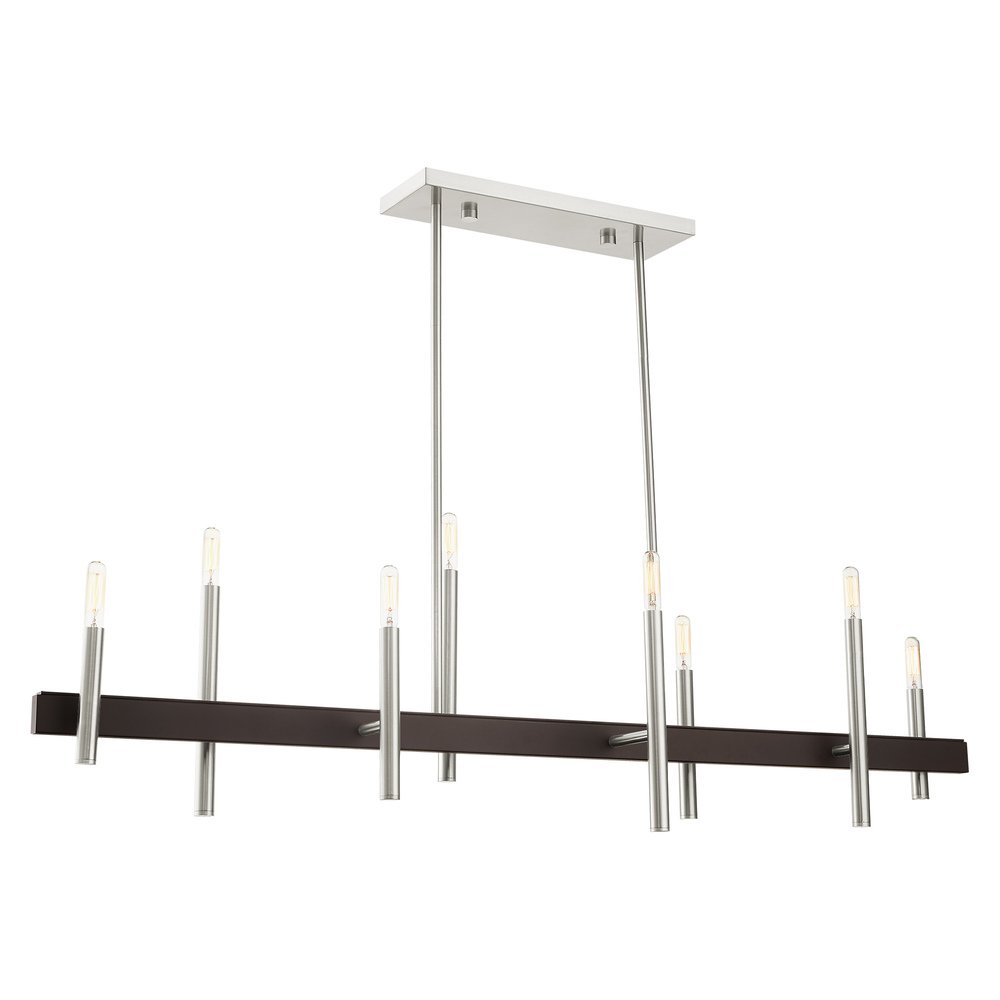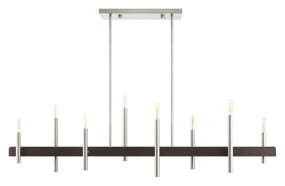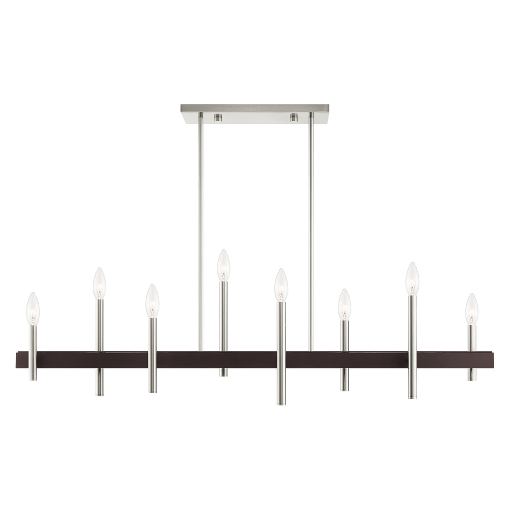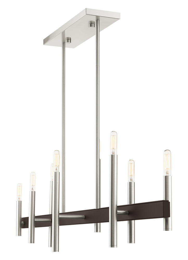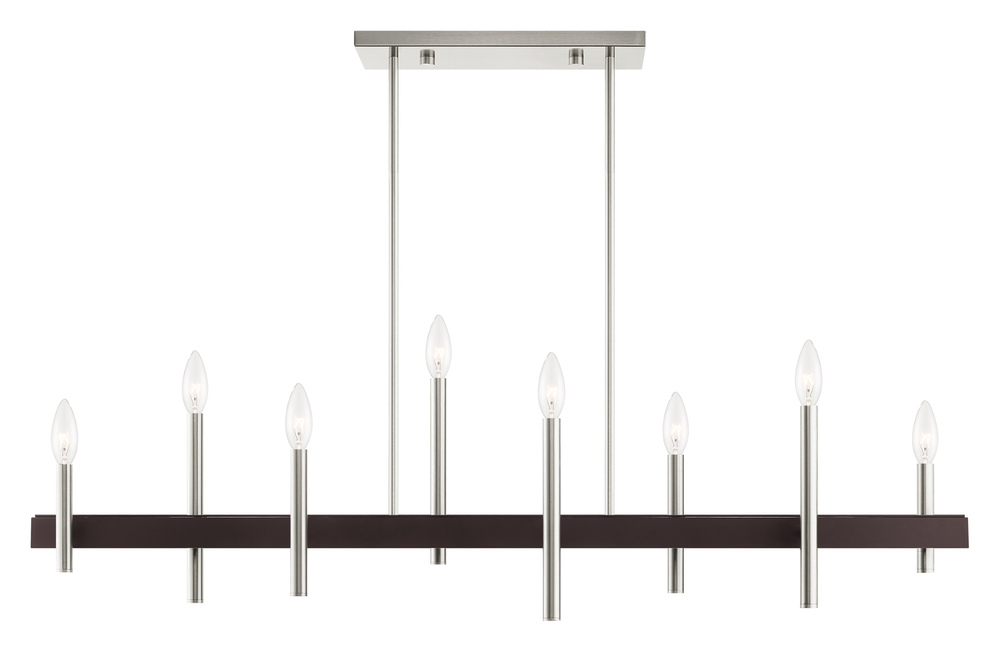 8 Light Black Extra Large Linear Chandelier with Brushed Nickel Accents