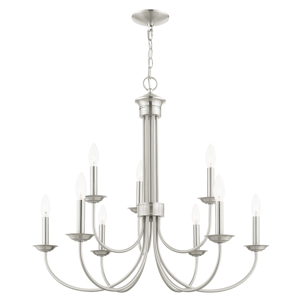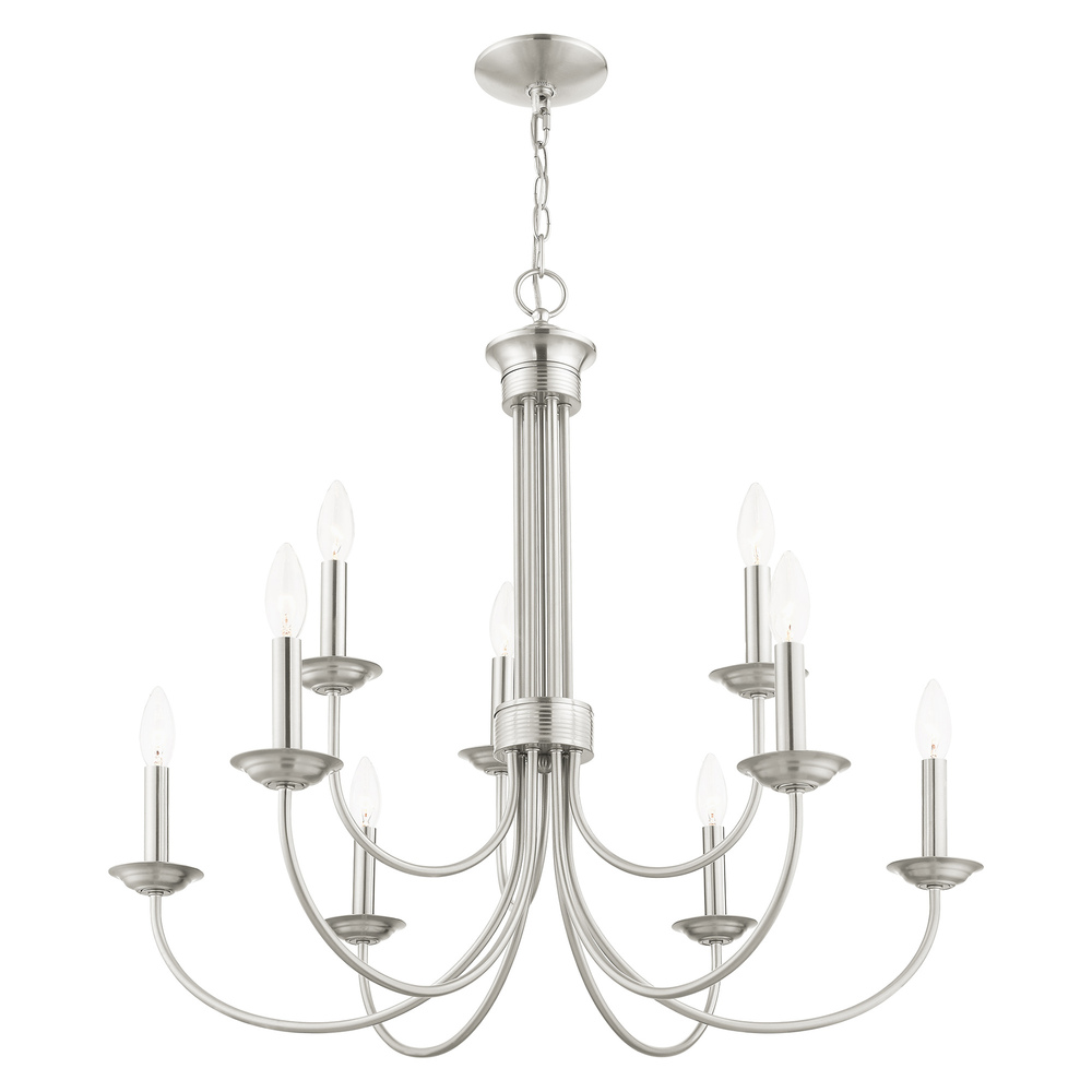 9 Light Antique Gold Leaf Large 2-Tier Chandelier