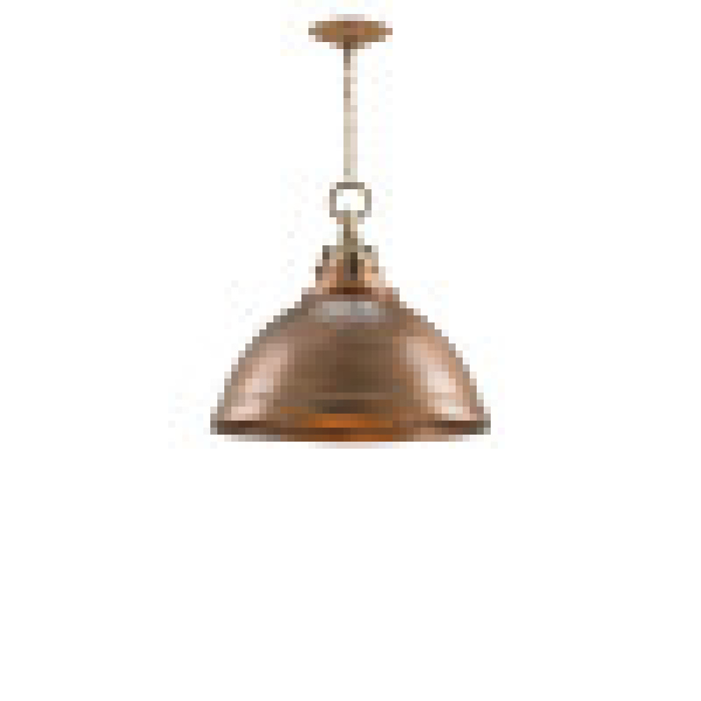 Command attention with the rich and authoritative finish on the Admiral Pendant, a versatile dome-shaped piece that possesses waves of charisma. The aluminum body has been treated to a hand-finished copper coating that pairs with antique brass hardware for a feeling of true warmth. The one-light pendant is an authoritative choice for industrial chic interiors and rough luxe rooms.