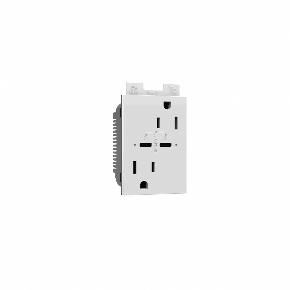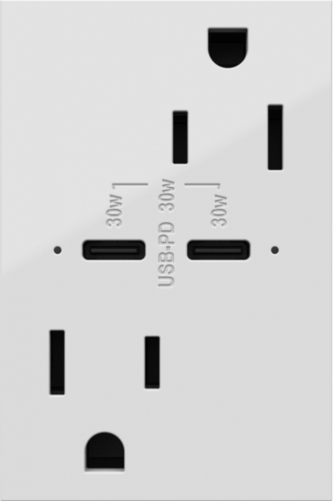 adorne? 15A Tamper-Resistant Ultra-Fast Plus Power Delivery USB Type-C/C Outlet, Plus-Size, White