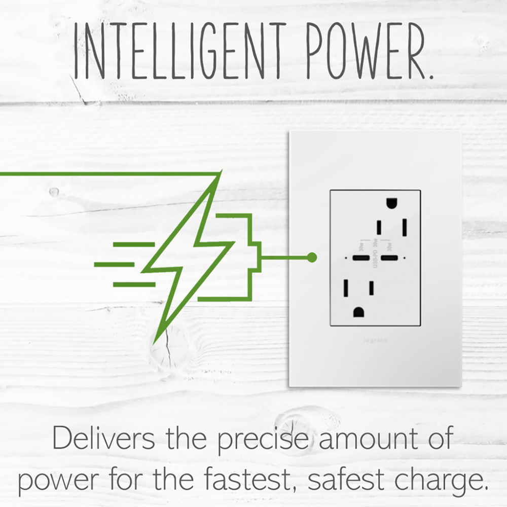 Charge phones, tablets and more up to 40% faster, with Ultra-Fast USB Outlets from the adorne? Collection. Made to deliver a leading 6 amps of power, it provides a fast, future-proof solution for convenient in-wall charging without an adapter. Easily replacing traditional outlets in as little as ten minutes, this Ultra-Fast USB Outlet transforms your space with modern functionality and the unique, contemporary aesthetic of adorne. Made exclusively for use with screwless Wall Plates from the adorne? Collection, sold separately.