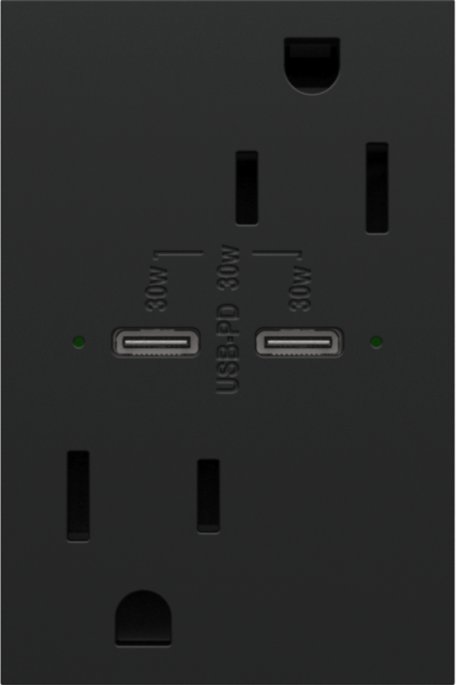 adorne? 15A Tamper-Resistant Ultra-Fast Plus Power Delivery USB Type-C/C Outlet, Plus-Size, Graphite