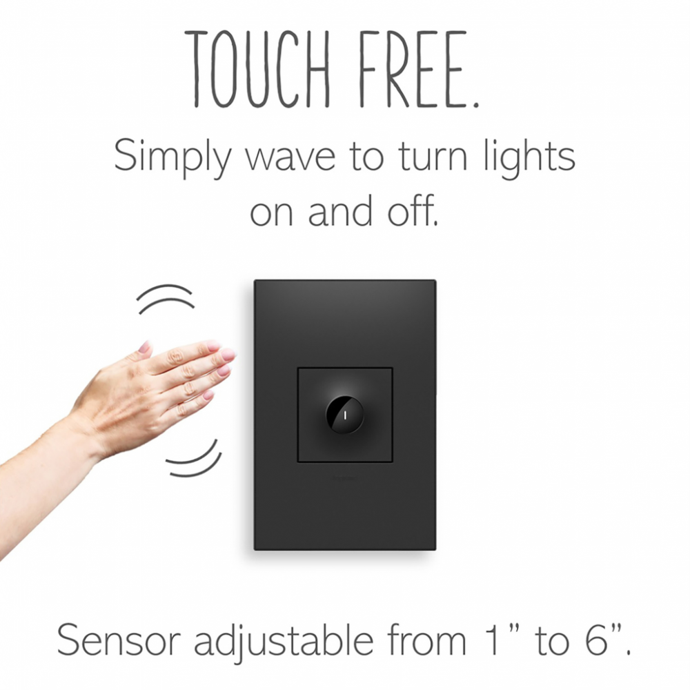 Perfect for turning the lights on or off when your hands are full or messy, especially in entryways or next to the kitchen sink. This touchless, practically hands-free light switch features innovative technology that allows you to control lights with a wave of your hand, for a germ-and-worry free option that also adds contemporary style to any space. Use the sleek, modern switch its own to control a light or fixture from a single location, or pair with a second switch to control a single light source from two locations.This switch* features enduring Microban? antimicrobial technology that works to reduce the growth of bacteria, around the clock, for the lifespan of the product.* Existing inventory of switches, dimmers and plastic wall plates from the adorne? Collection at some partner locations may not yet include Microban? protection. To confirm that a specific Legrand product is protected with Microban?, check that the exterior of the product packaging includes a green dot or a ""Protected with Microban"" label.Made exclusively for use with screwless Wall Plates from the adorne? Collection, sold separately.No antimicrobial efficacy claims are being made or are valid with respect to products sold in Canada.
