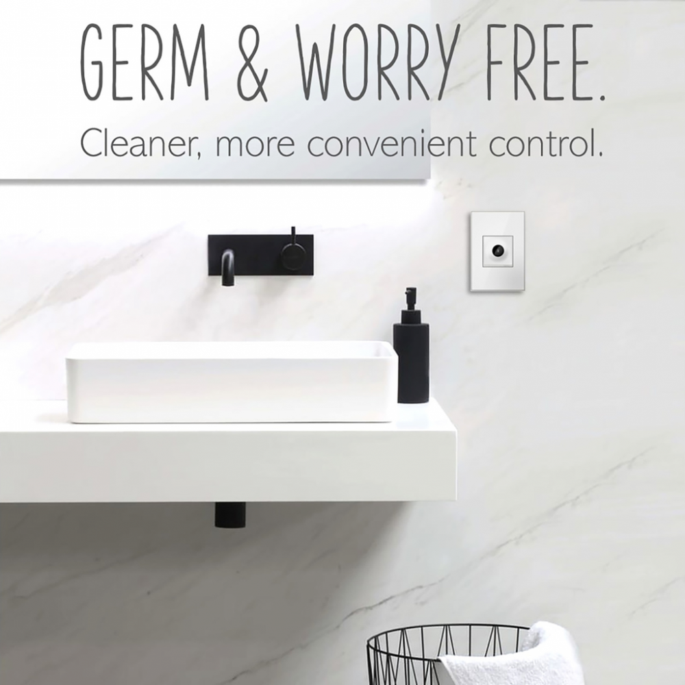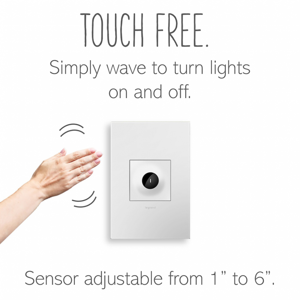 Perfect for turning the lights on or off when your hands are full or messy, especially in entryways or next to the kitchen sink. This touchless, practically hands-free light switch features innovative technology that allows you to control lights with a wave of your hand, for a germ-and-worry free option that also adds contemporary style to any space. Use the sleek, modern switch its own to control a light or fixture from a single location, or pair with a second switch to control a single light source from two locations.This switch* features enduring Microban? antimicrobial technology that works to reduce the growth of bacteria, around the clock, for the lifespan of the product.* Existing inventory of switches, dimmers and plastic wall plates from the adorne? Collection at some partner locations may not yet include Microban? protection. To confirm that a specific Legrand product is protected with Microban?, check that the exterior of the product packaging includes a green dot or a ""Protected with Microban"" label.Made exclusively for use with screwless Wall Plates from the adorne? Collection, sold separately.No antimicrobial efficacy claims are being made or are valid with respect to products sold in Canada.