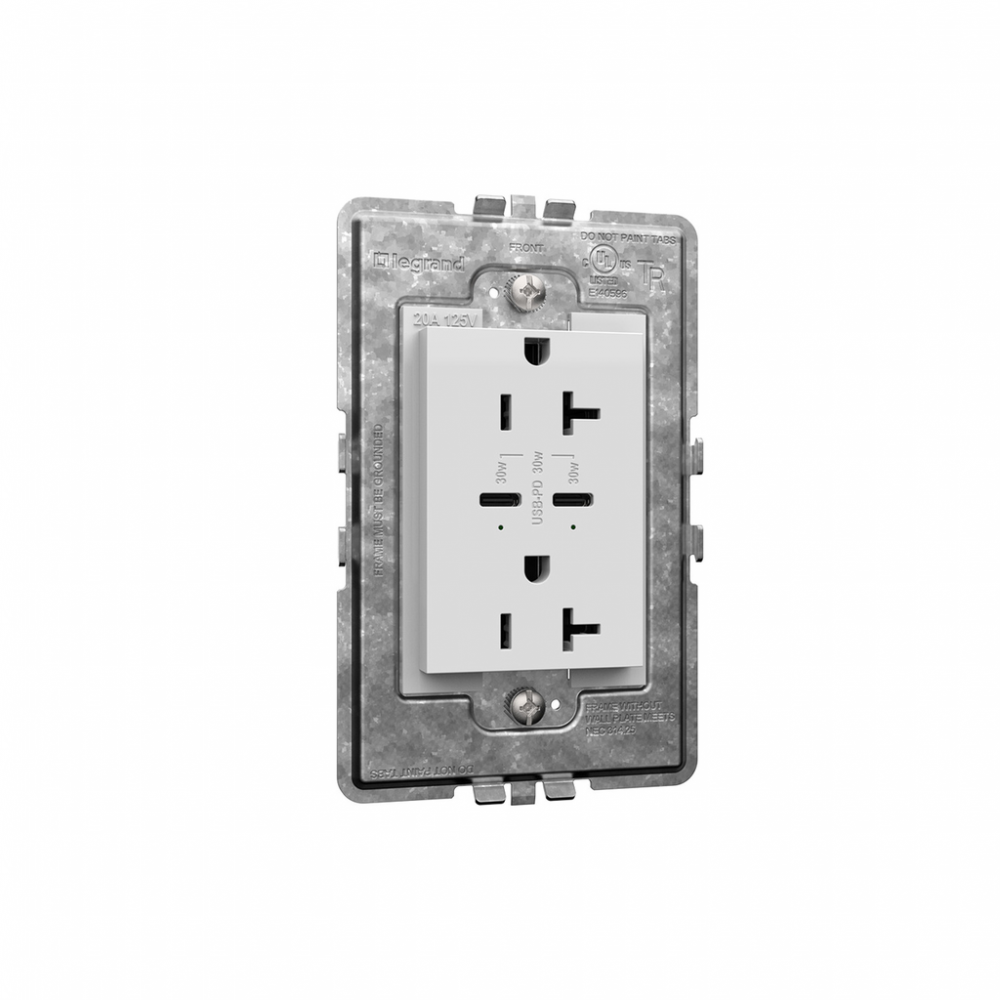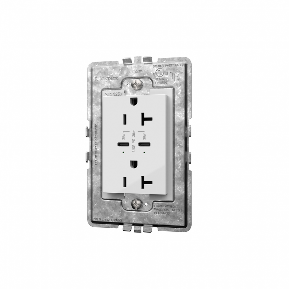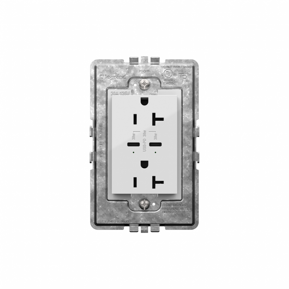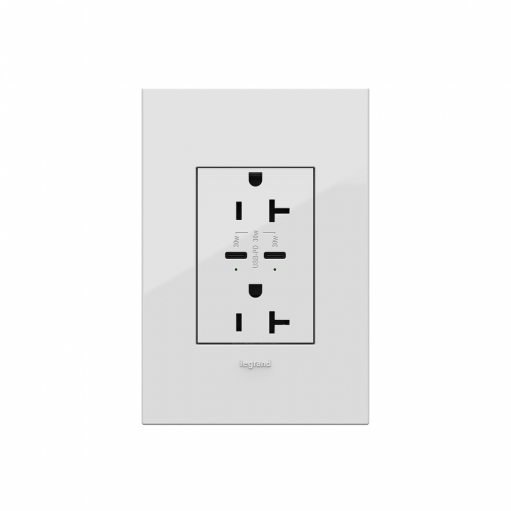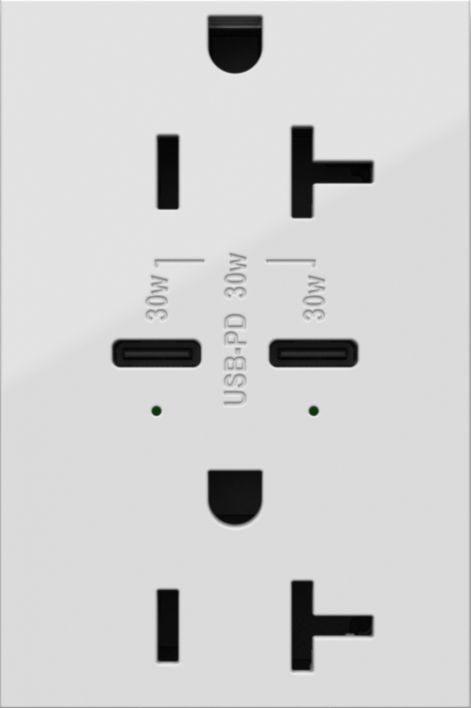 adorne? 20A Tamper-Resistant Ultra-Fast Plus Power Delivery USB Type-C/C Outlet, Plus-Size, White