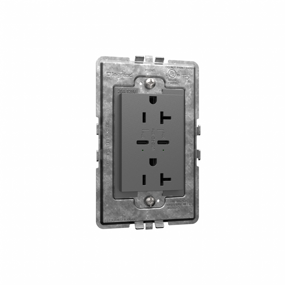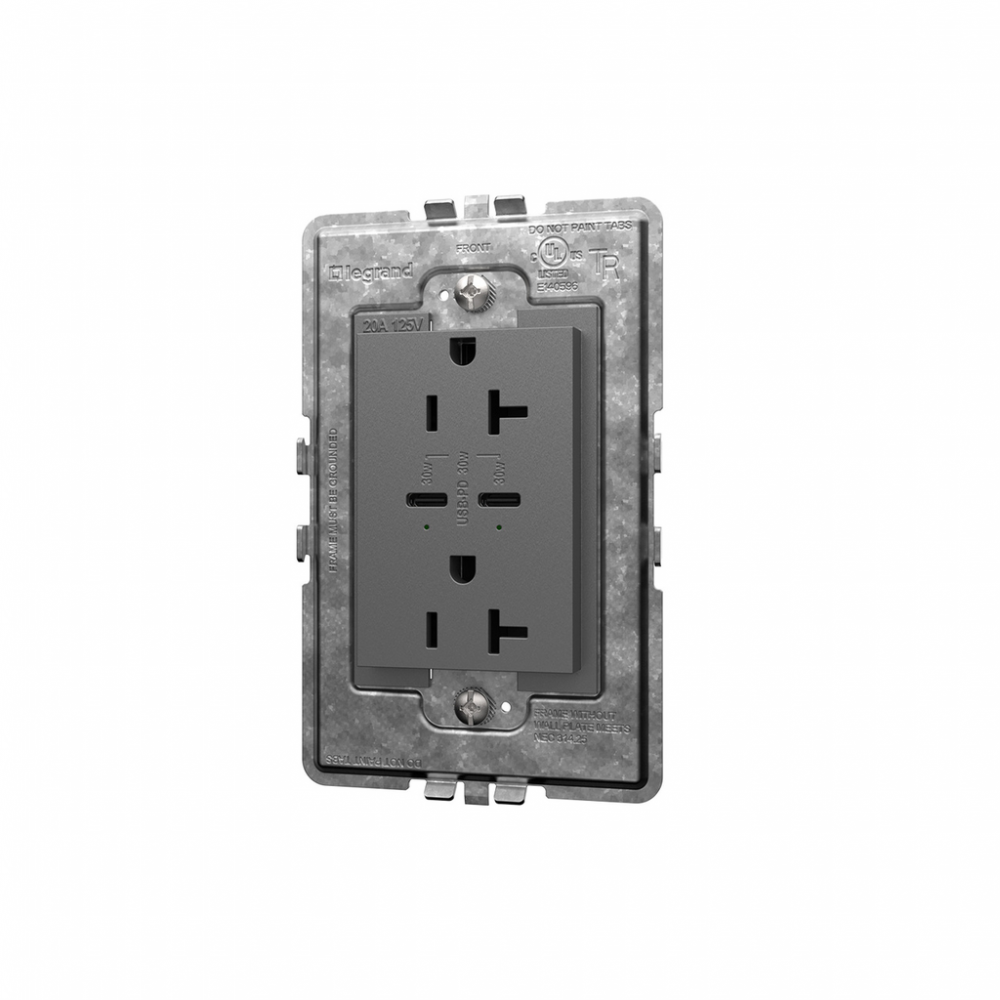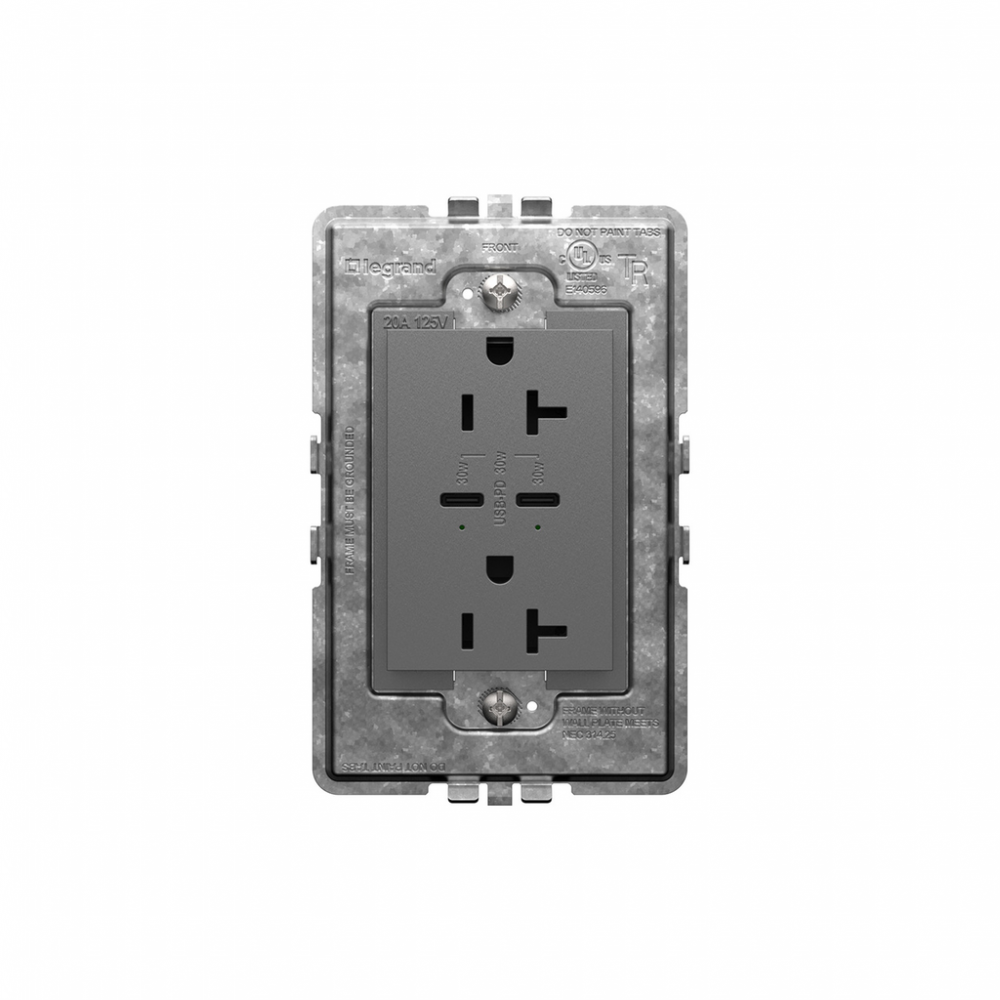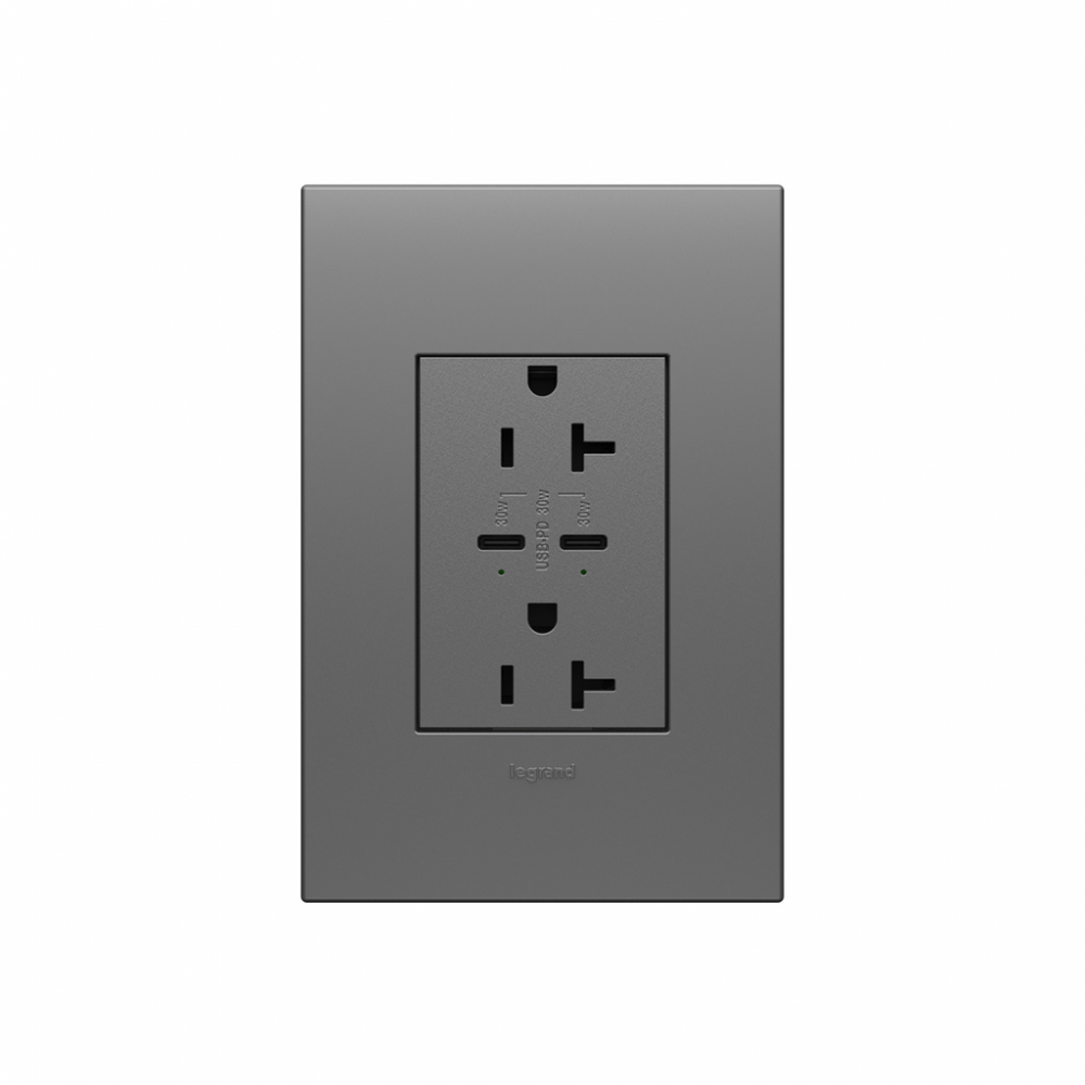 adorne? 20A Tamper-Resistant Ultra-Fast Plus Power Delivery USB Type-C/C Outlet, Plus-Size, Magnesium