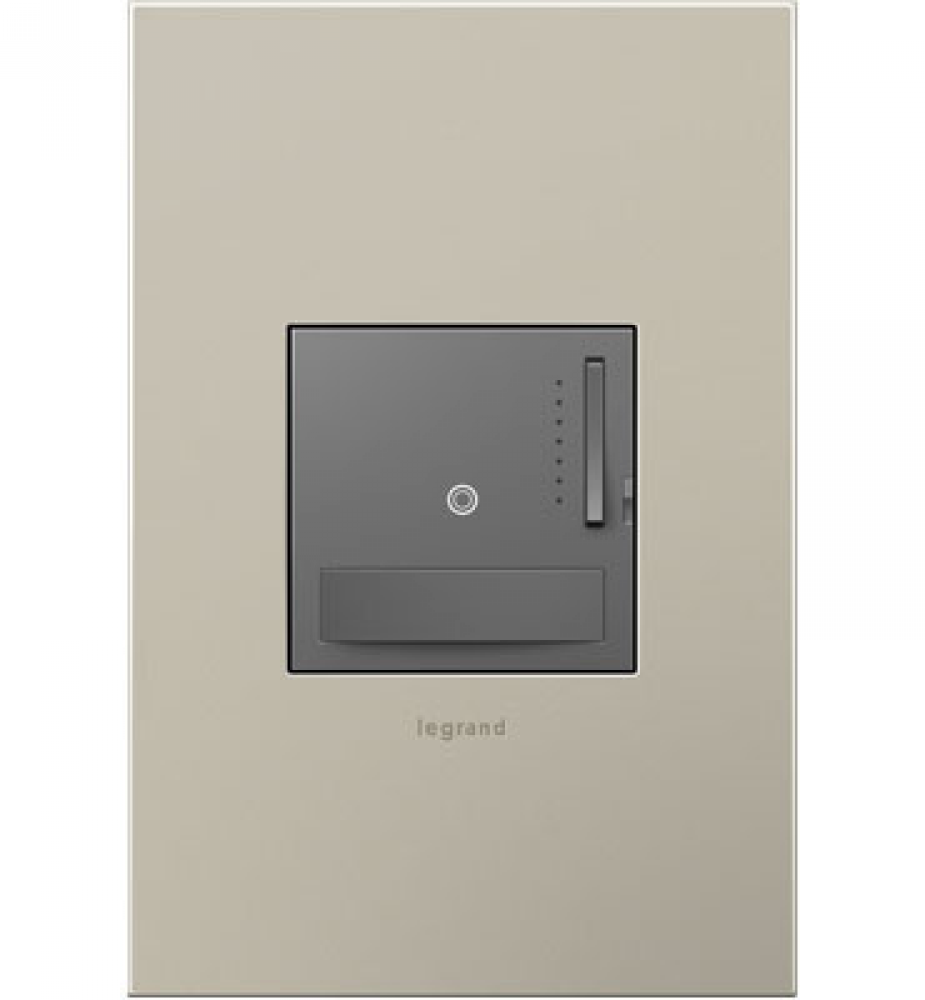 Perfect for garages and pantries, this dimmer switch allows for both manual and automatic motion-activated control. Using motion-sensing technology, it automatically turns lights on when you enter a room, and off when you leave. With manual control, you can even adjust to your preferred light level with the subtle built-in slider. Use on its own to control an incandescent or halogen light or fixture from a single location, or pair with a second Motion Sensor Dimmer to use as a remote dimmer switch for control of a single light source from two locations. This Motion Sensor Dimmer is meant for single fixtures and small lighting groups that do not exceed 700W.This dimmer* features enduring Microban? antimicrobial technology that works to reduce the growth of bacteria, around the clock, for the lifespan of the product.* Existing inventory of switches, dimmers and plastic wall plates from the adorne? Collection at some partner locations may not yet include Microban? protection. To confirm that a specific Legrand product is protected with Microban?, check that the exterior of the product packaging includes a green dot or a ""Protected with Microban"" label. Made exclusively for use with screwless Wall Plates from the adorne? Collection, sold separately.No antimicrobial efficacy claims are being made or are valid with respect to products sold in Canada.