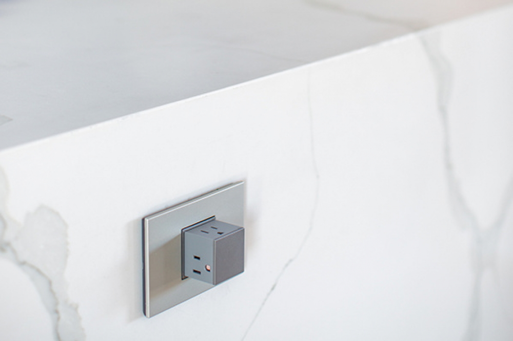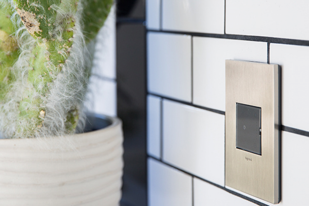 Crafted with real cast metal, this is the coolest contemporary accent to any stylish kitchen or bath. A 4-Gang Wall Plate, it is perfectly sized to fit any combination of up to four standard-sized adorne devices, or up to eight half-sized adorne designer switches and outlets.