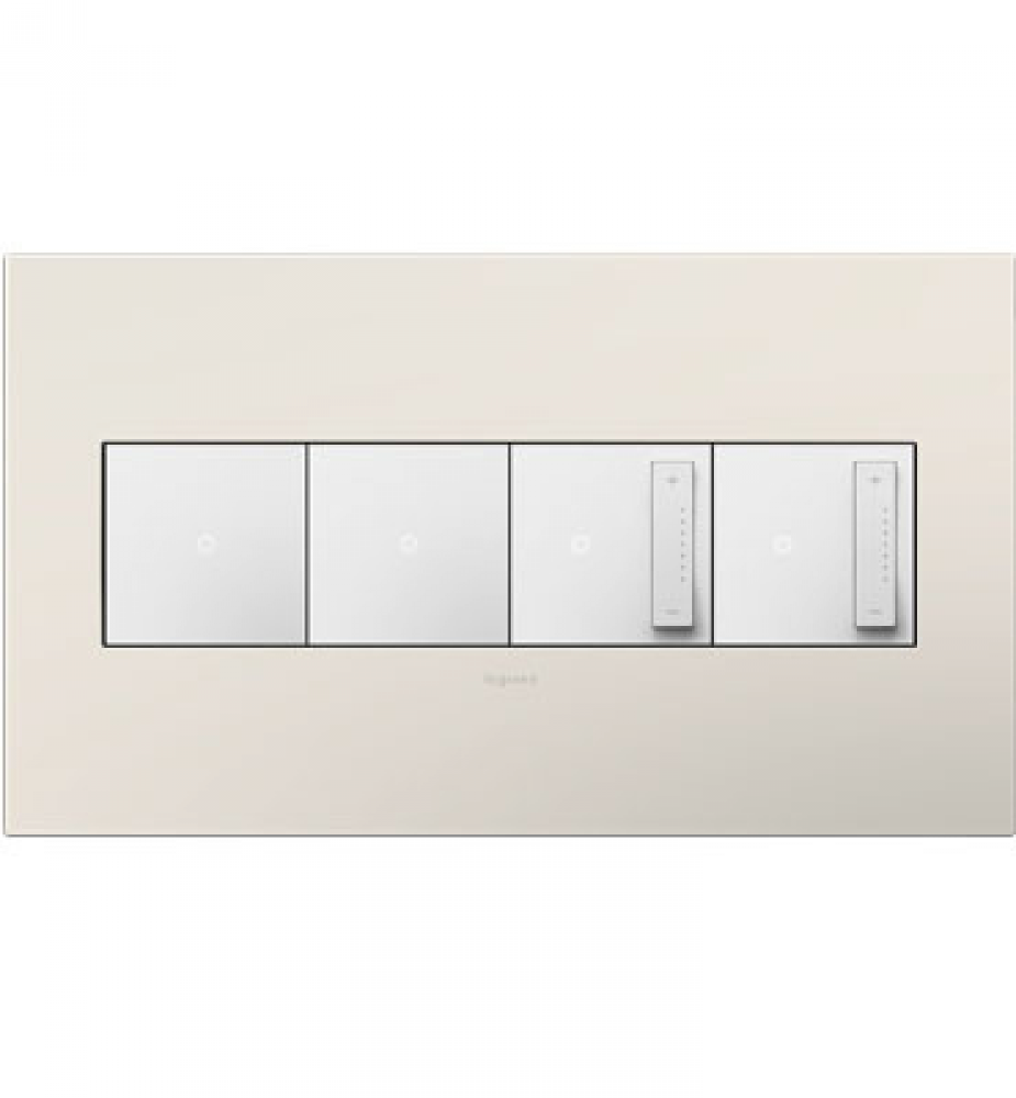 An easy-going tone that coordinates with practically any d?cor or style. A 2-Gang Wall Plate, it is perfectly sized to fit any combination of up to two standard-sized adorne devices, or up to four half-sized adorne designer switches and outlets.