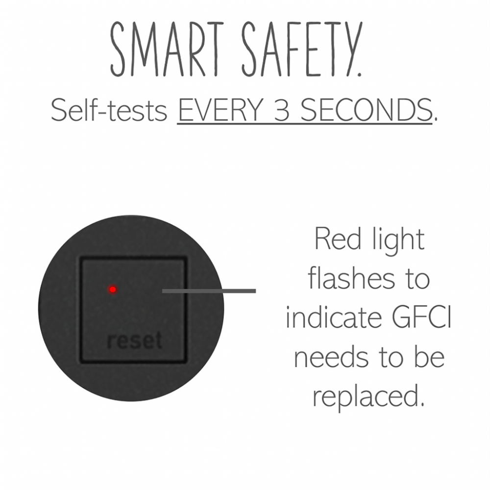 Add contemporary style, safely, to kitchens, bathrooms and more, with GFCI Outlets from the adorne Collection. Meeting Electrical Code* for ground fault protection in the home, GFCI outlets make it easier to fix trips right where they happen ? no more confusion or running to the breaker box. The adorne GFCI Outlets also self-test automatically every three seconds to ensure reliable protection from shock due to ground fault occurrences. *GFCI protection is required by code in bathrooms, kitchens, garages, basements, outdoor areas, and for any other outlets found within six feet of a sink or water source. GFCI outlets should always be used when replacing existing GFCI outlets during renovation.Made exclusively for use with screwless Wall Plates from the adorne? Collection, sold separately.